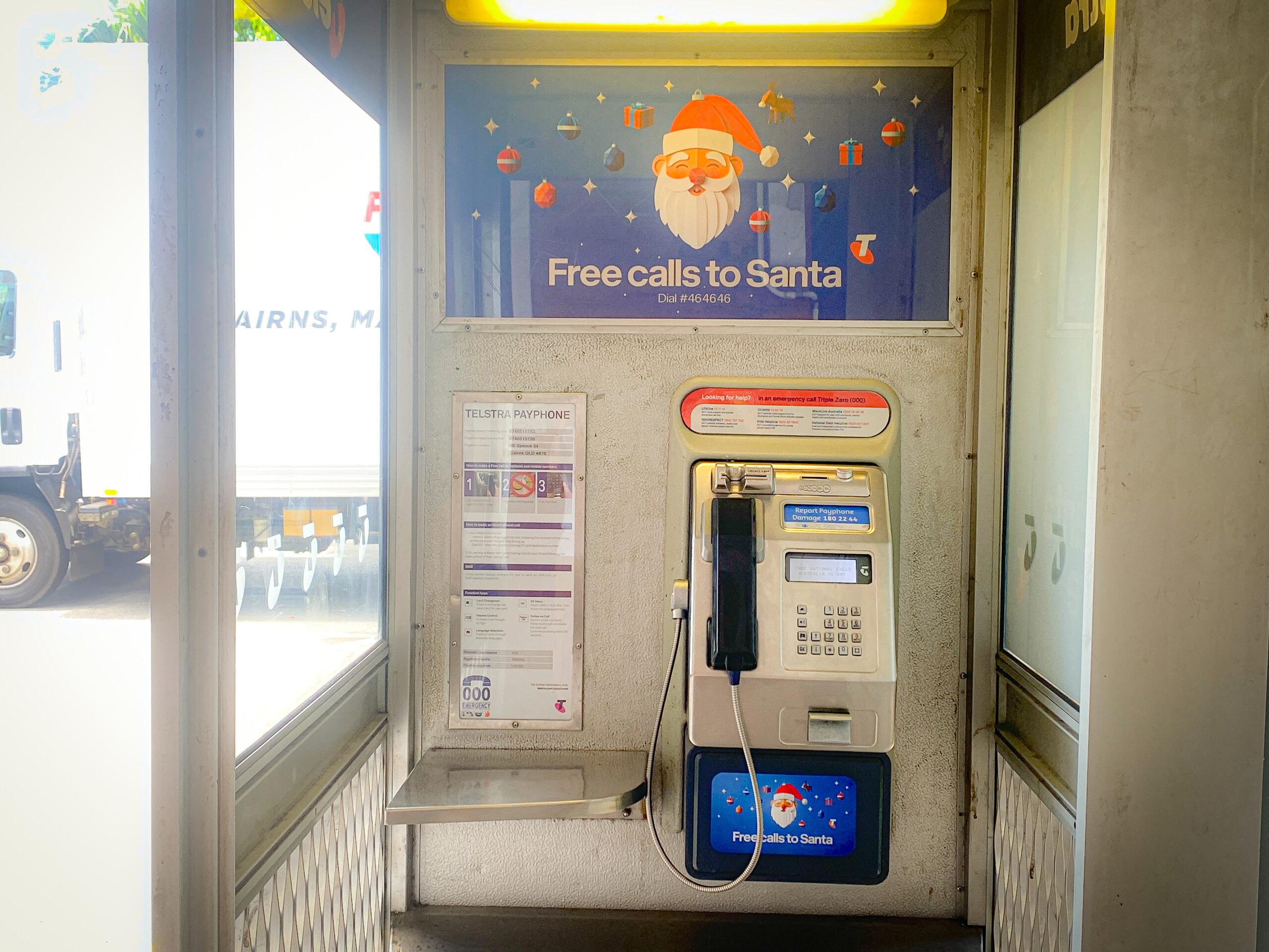 オーストラリアは、2021年から公衆電話が無料で使えるようになりました。こちらは、サンタクロースに電話ができる公衆電話。季節限定ではありますが、#4646 にかけると、ちゃんとサンタクロースが答えてくれます。遊び心のある公衆電話は、旅の思い出になるはず。