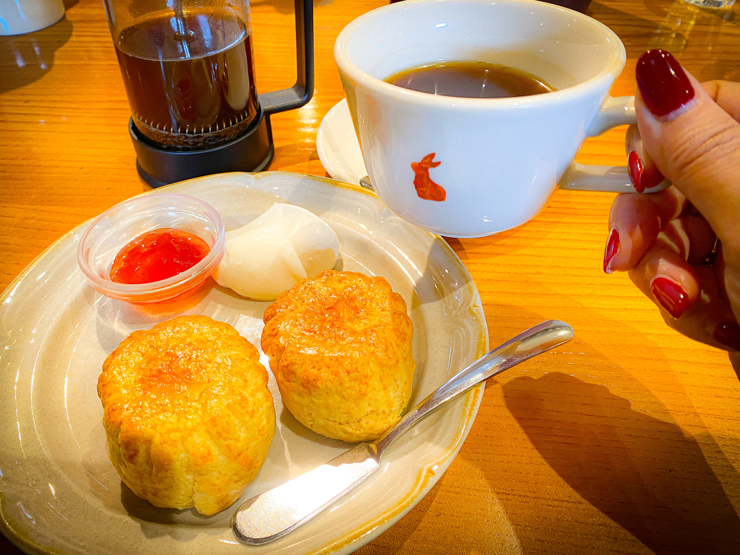 今回はお店自慢の手づくりスコーンをいただきました。適度に水分を含んでおり、しっとり温かい スコーンでほっと一息。添えられたクリームは優しい甘味で、コーヒーと相性抜群。どんどん食べ進めてしまいました。