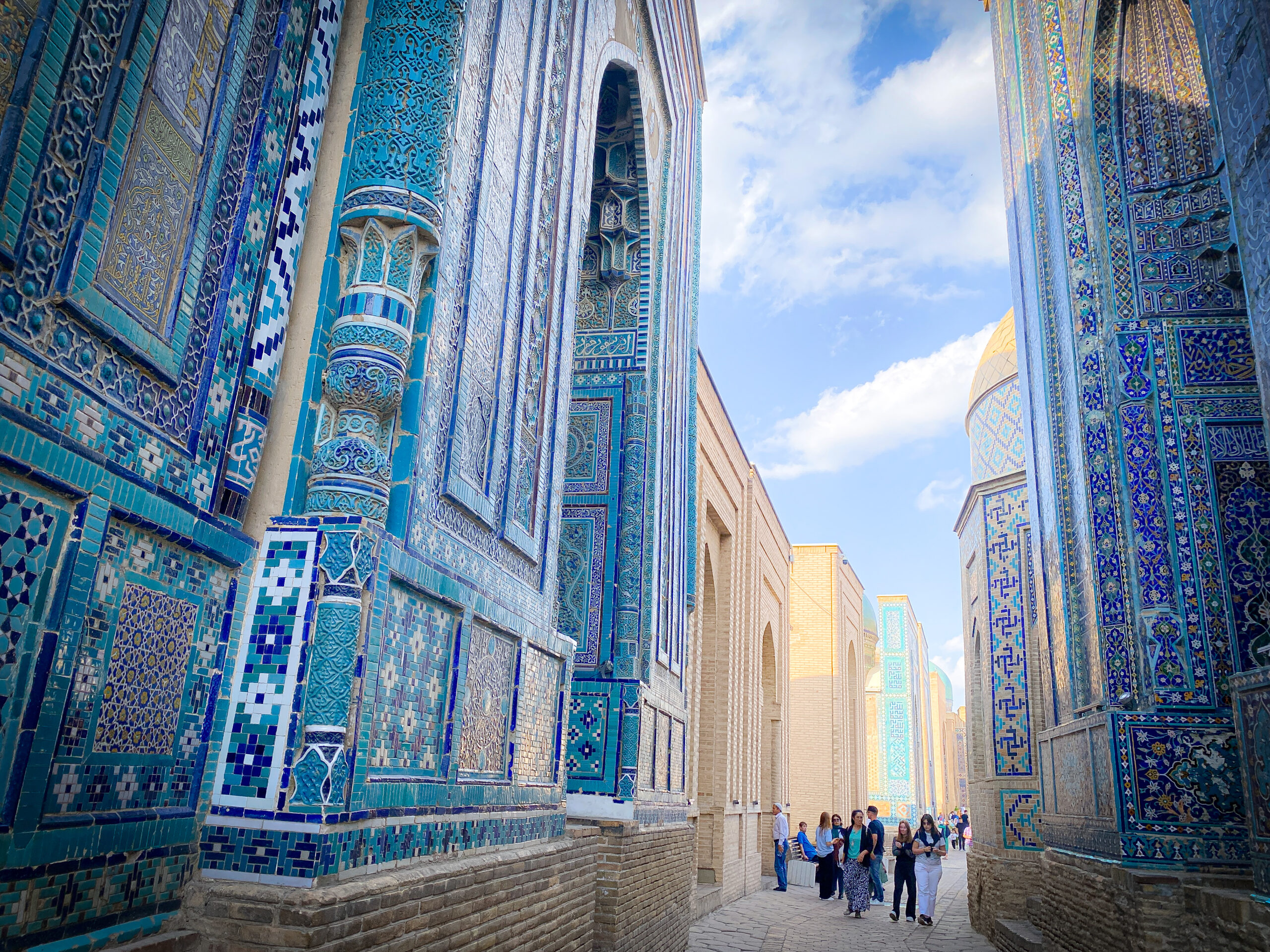 首都・タシケントから特急電車で2時間程のところにある、ウズベキスタンの人気観光地「サマルカンド」。あまりに美しいサマルカンドブルーが印象的で、「青の都」とも呼ばれています。かつては、シルクロードの重要拠点として栄えた場所。一度訪れたら虜になる人も多いサマルカンドですが、今回はシャーヒズィンダ廟群をご紹介します。