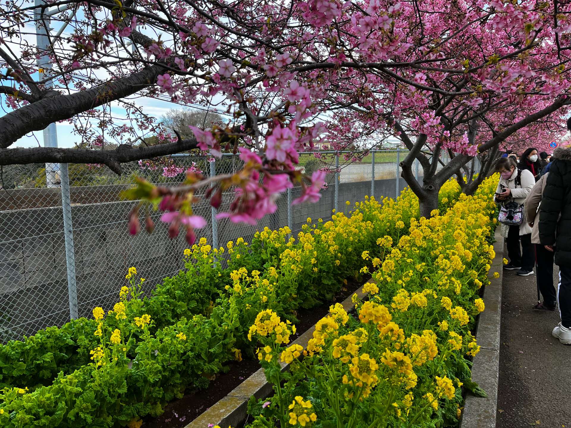 大岡川を歩いていると気づくのが、満開の桜とまだつぼみの桜があること。