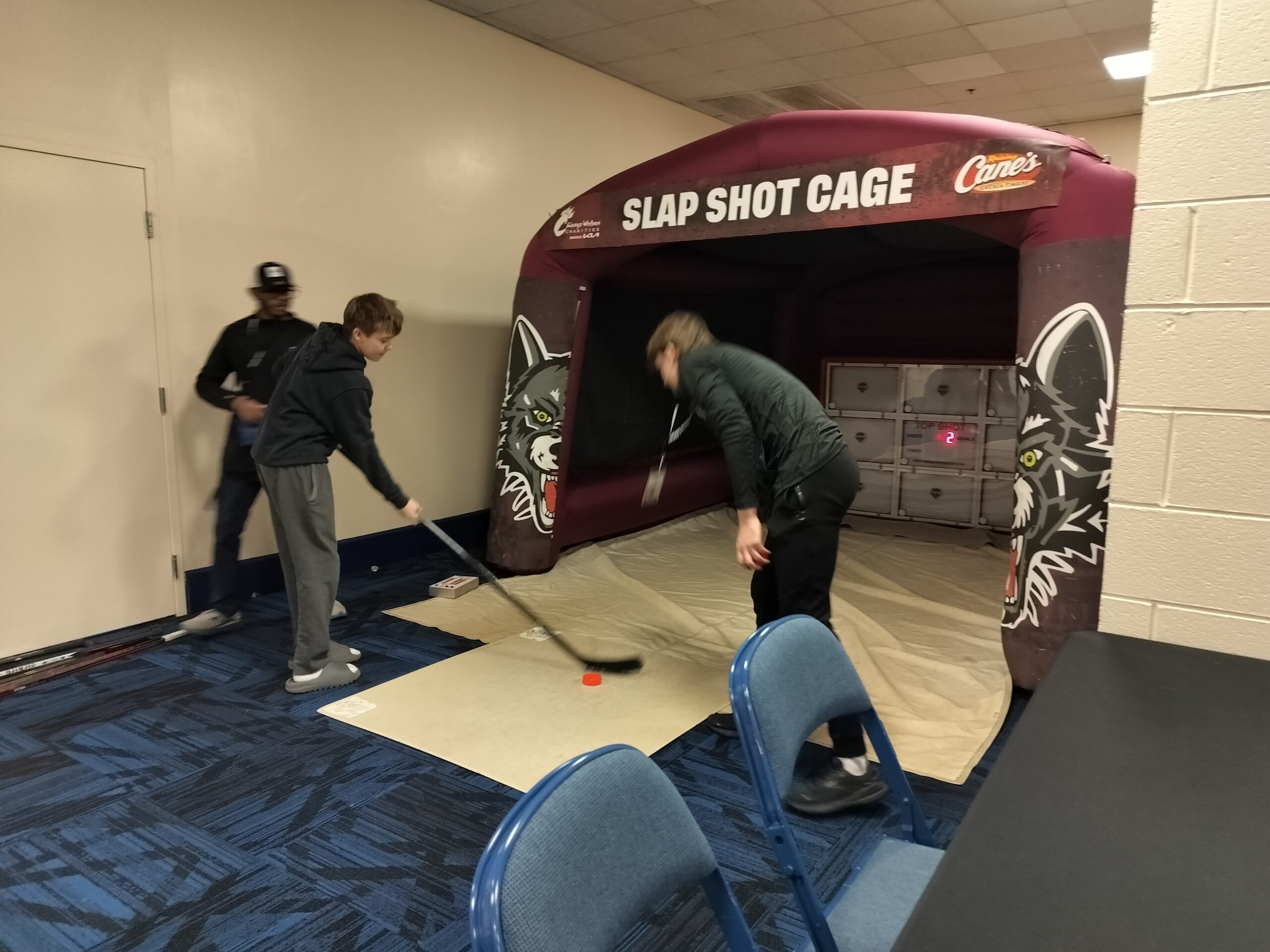 取材した時には子供から大人と楽しめる体験型ゲームのホッケーゴールやパックで遊ぶコーナー、選手のロッカールームを再現したコーナーや、写真スポットなど色々。
