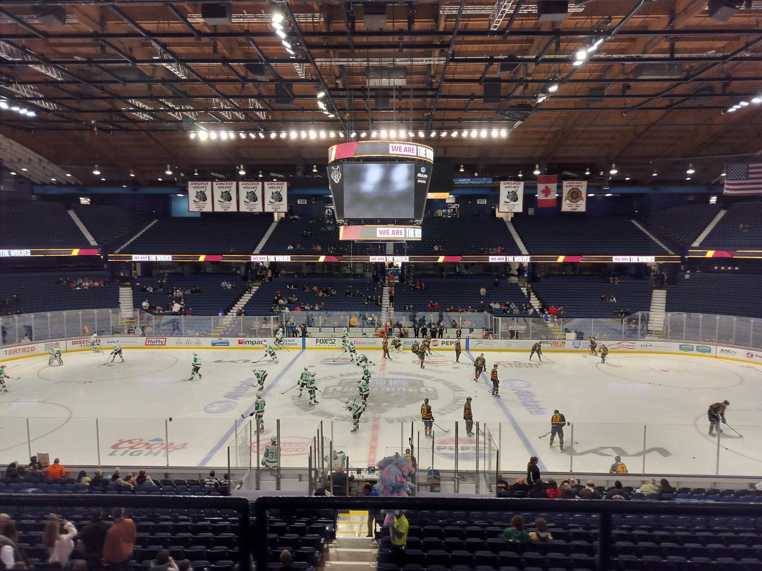 1994年1月25日創設のシカゴウルブズは1994年9月18日に最初のゲームを皮切りに現在迄に5回リーグチャンピオンに輝き、アメリカホッケーリーグ(AHL)に所属しているプロのアイスホッケーチームです。拠点はシカゴ郊外北西部、オヘア空港近くにあるRosemont(ローズモント)のAllstate Arena(オールステイトアリーナ)で11月から4月と活動し、選手は1997年生まれから2005年の26人程がメインとして活躍しているとっても若いチームです。