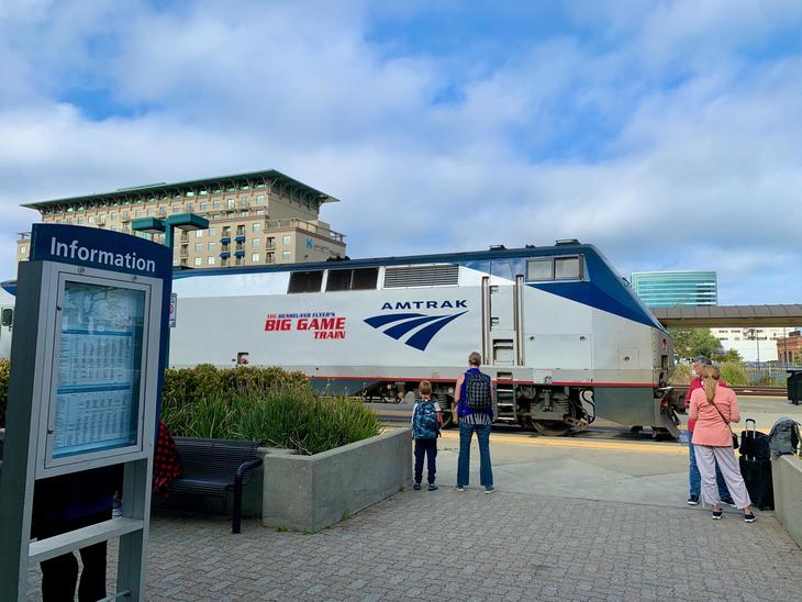 と前置きが長くなりましたが、鉄道旅好きの鉄子と呼ばれている私。以前から乗ってみたかったアムトラック「コーストスターライト」に初乗車。このルートロサンゼルス〜シアトルを結んでいて、特に南カリフォルニアの太平洋の海岸線を望みながらの列車旅が楽しめます。