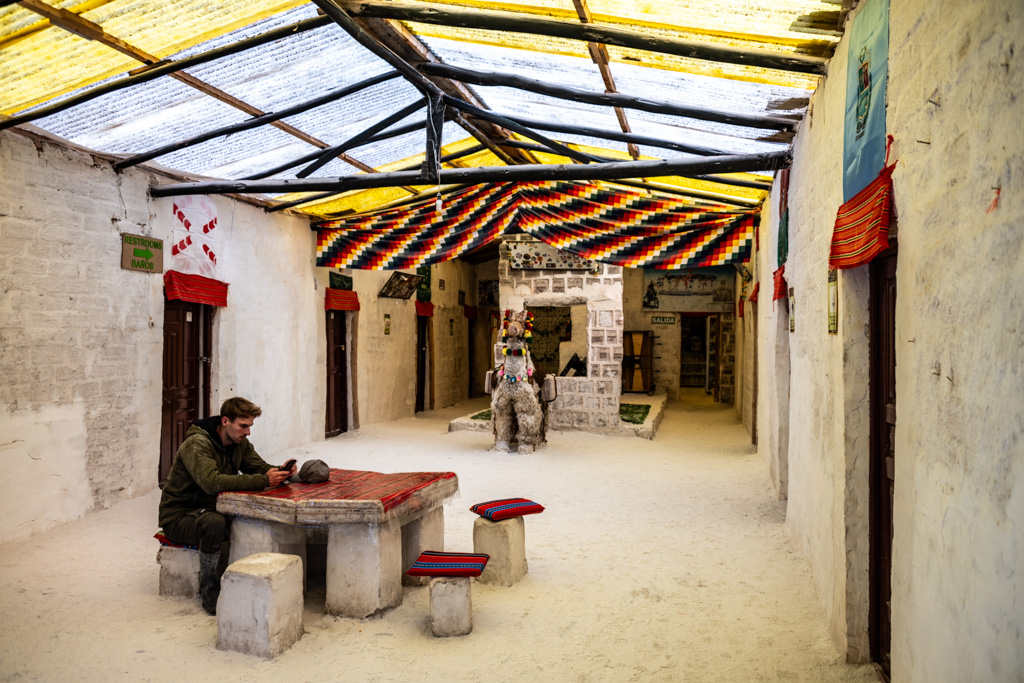塩のブロックで出来ていますが、雨季の雨で損傷が激しく、自然破壊にもなるという事で今は営業禁止になっているそうです。中は自由に入れて寛ぐことができます。