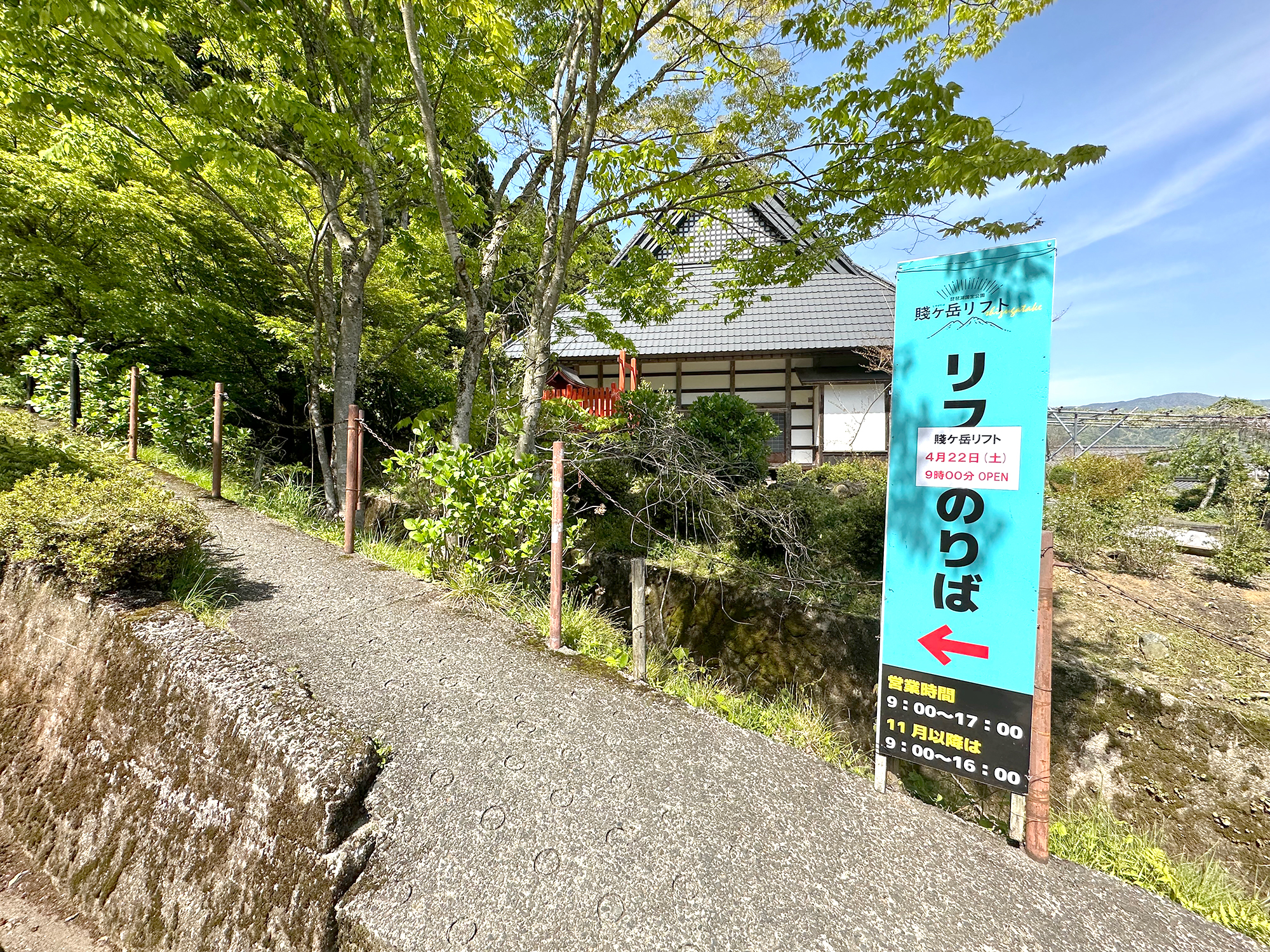 賤ヶ岳リフトは、JR北陸本線木ノ本駅から車で5分、バスで15分ほどの場所にあります。リフトの営業期間中、土日・祝日は木ノ本駅から賤ケ岳リフトへの無料シャトルバスも運行していてとても便利。リストのりばの前には、無料駐車場があるので、自家用車でのアクセスもOKです。
