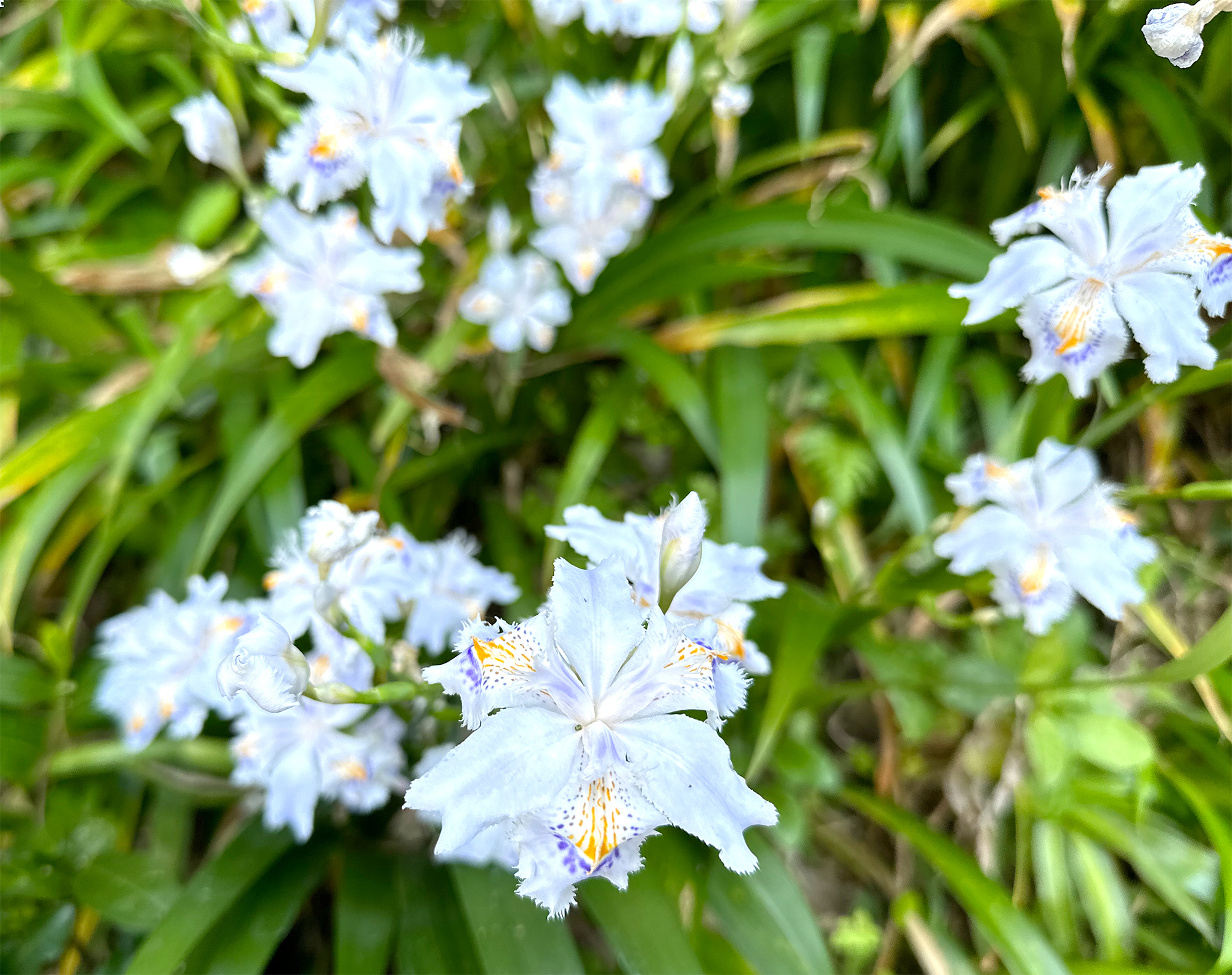 ちょうどゴールデンウィークの時期は、リフト周辺のあちらこちらに、白いシャガの花がたくさん咲いています。鹿の被害があるそうで、一面のシャガの花……という訳ではないのですが、見頃を迎えた可憐な花と新緑が、出迎えてくれます。