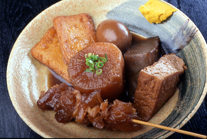 大根や玉子、こんにゃく、牛すじなどの定番商品を単品で頼むのも良いですし、五福盛、七福盛と言ったおまかせの盛り合わせもあります。