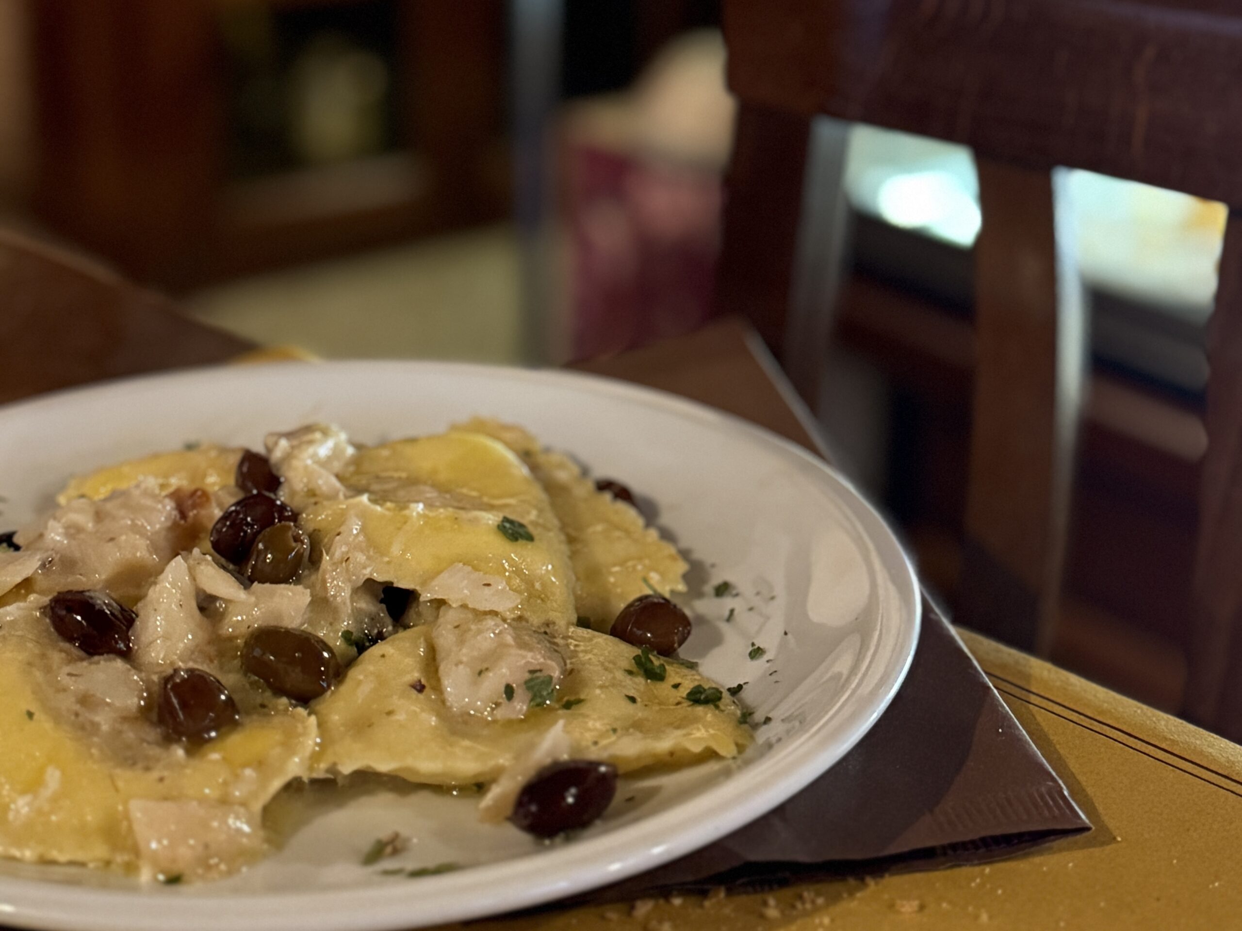 レストランでは、イタリアのパスタ料理ラビオリの中にバッカラが入っているもの。