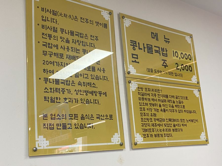 そのG-DRAGONママおすすめのお店ですが、地下鉄「ソウルの森」駅1番出口から約徒歩3分のところにあるコンナムルクッパ専門店「ビサボル全州コンナムルクッパ」というお店で、行ってみると思っていたより民的なお店です。