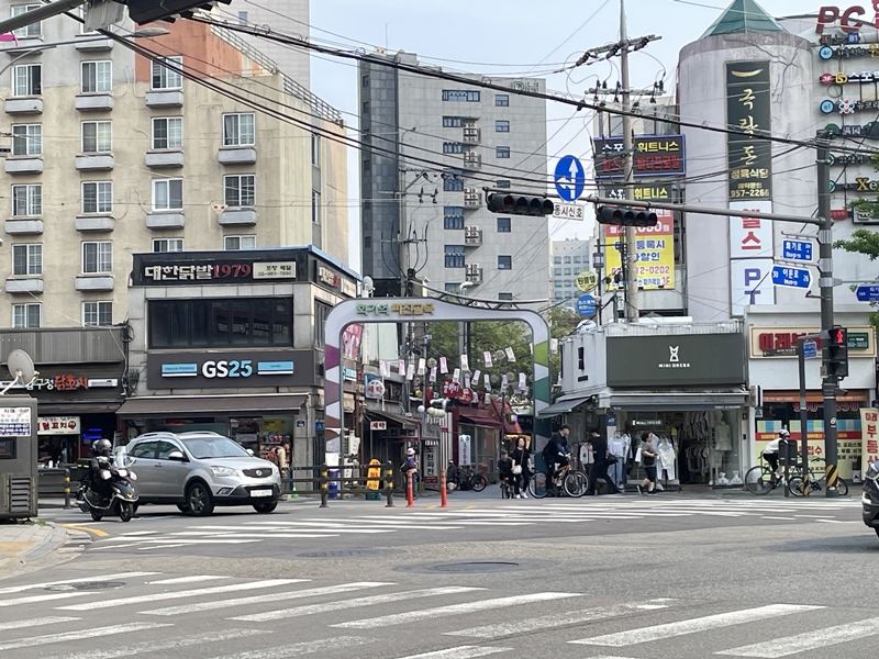 回基洞(フェギドン・회기동)は地下鉄1号線、京義・中央線、京春線の回基(フェギ・회기)駅が最寄り駅で韓国の名門大学慶煕(キョンヒ・경희)大学周辺のエリアのことをいいます。世界各国から来た留学生が多く、駅を降り、大学方面へ歩いていると、英語はもちろん、中国語や日本語などが聞こえてきました。住民のうち、学生が約45%を占める学生街です。