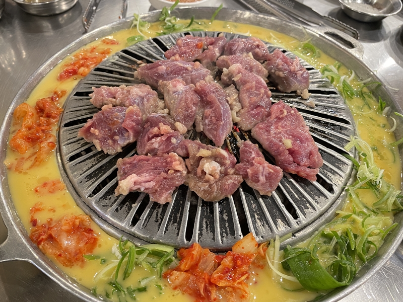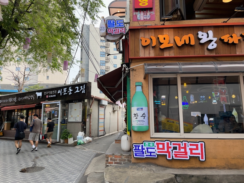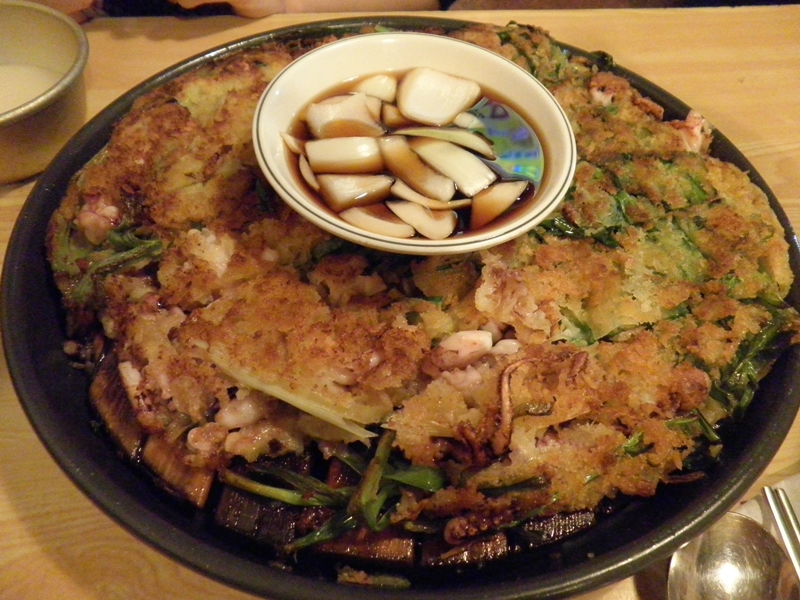 回基洞のご当地グルメといえば、回基駅近くのパジョン横丁にあるパジョン(파전)です。パ(파)はネギのことで、パジョンはネギの他にイカなどの海鮮ものがぎっしり入った韓国のお好み焼きです。パジョン横丁には10軒ぐらいパジョン屋がたち並んでいます。分厚く、油でしっかり焼かれているため外はサクッとしていて、中は柔らかいです。韓国のお酒、マッコリと一緒にいただくのが定番です。回基駅を降りたら、ぜひ寄ってみてください。