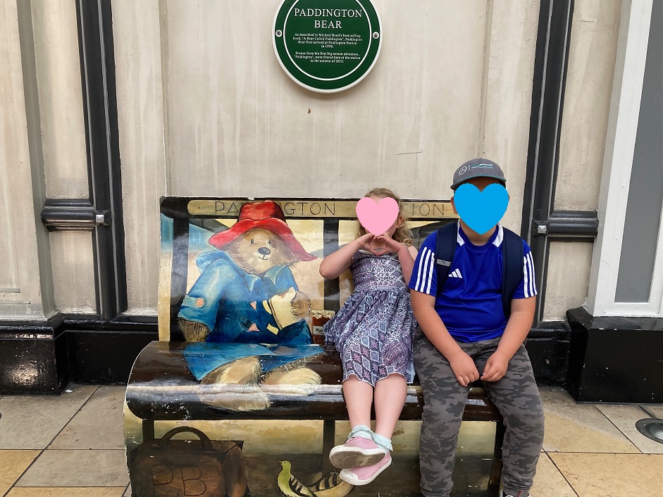 その隣には、マーマレードサンドウィッチを食べているパディントンが描かれたベンチが。背後の壁には彼の記念プレートも掛かっているので、ここでの撮影もお忘れなく。