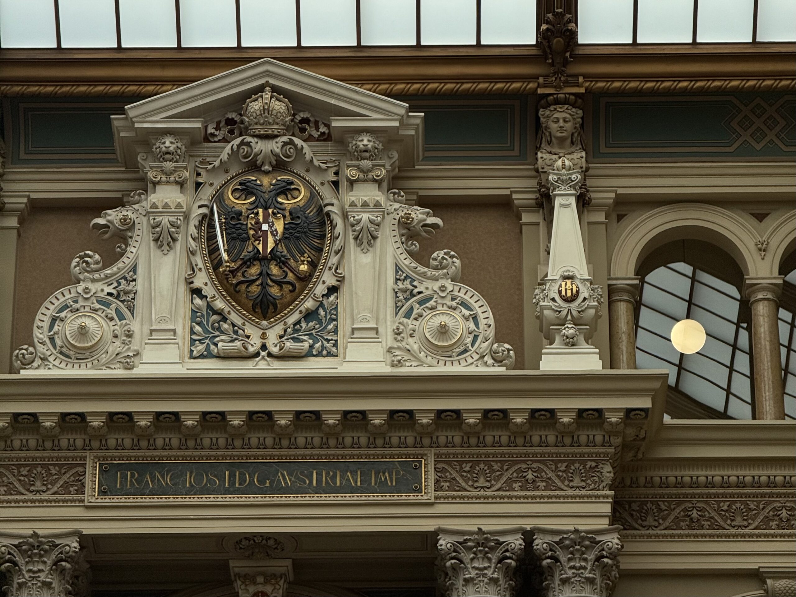 女神像の上部には、フランツ・ヨーゼフ皇帝の名前とハプスブルク家の家紋があります。