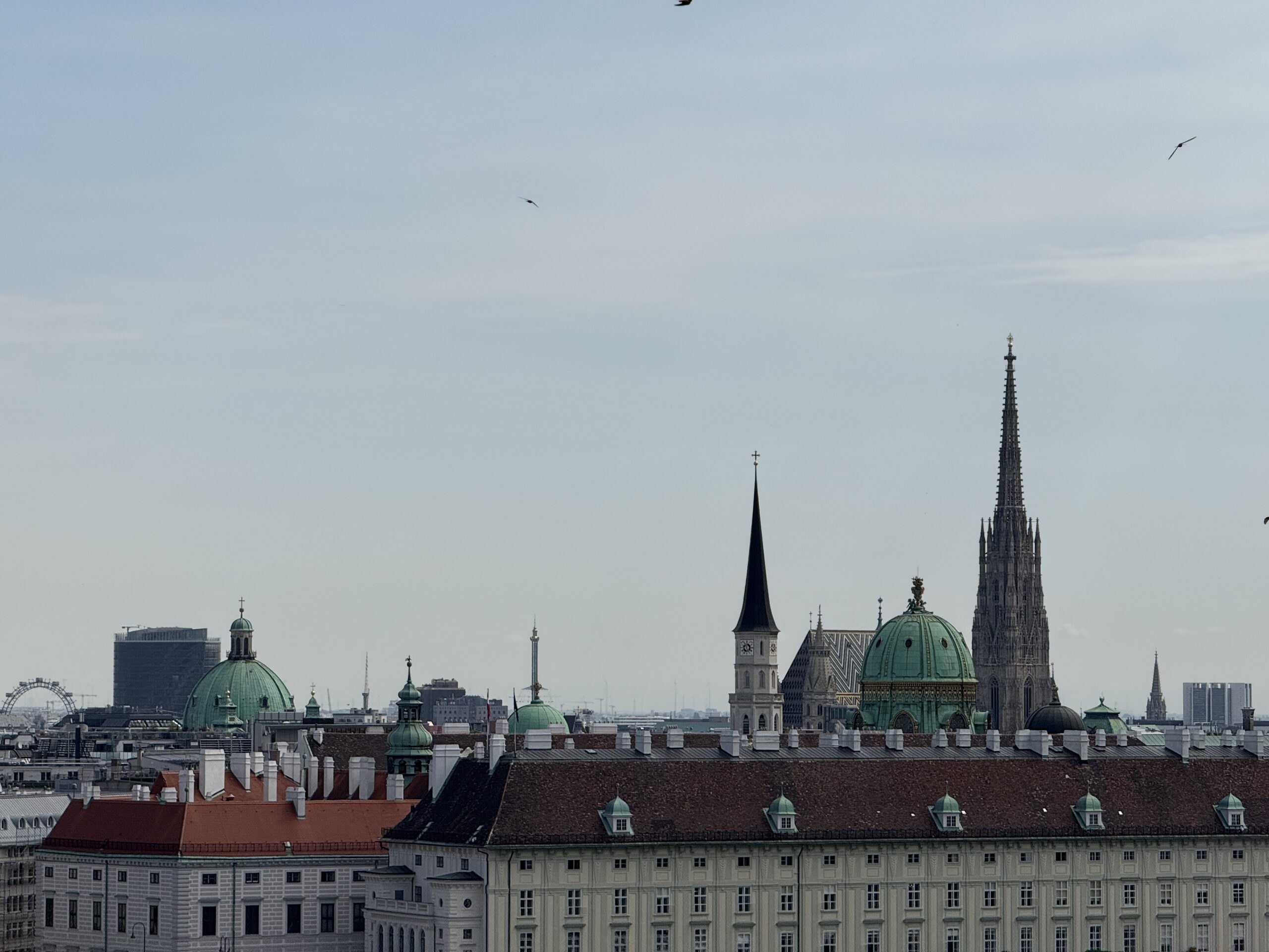 遠くに見えるのは、街のシンボルでもあるシュテファン大聖堂、真下には国会議事堂、市庁舎、旧市街の景色が眺めることができます。