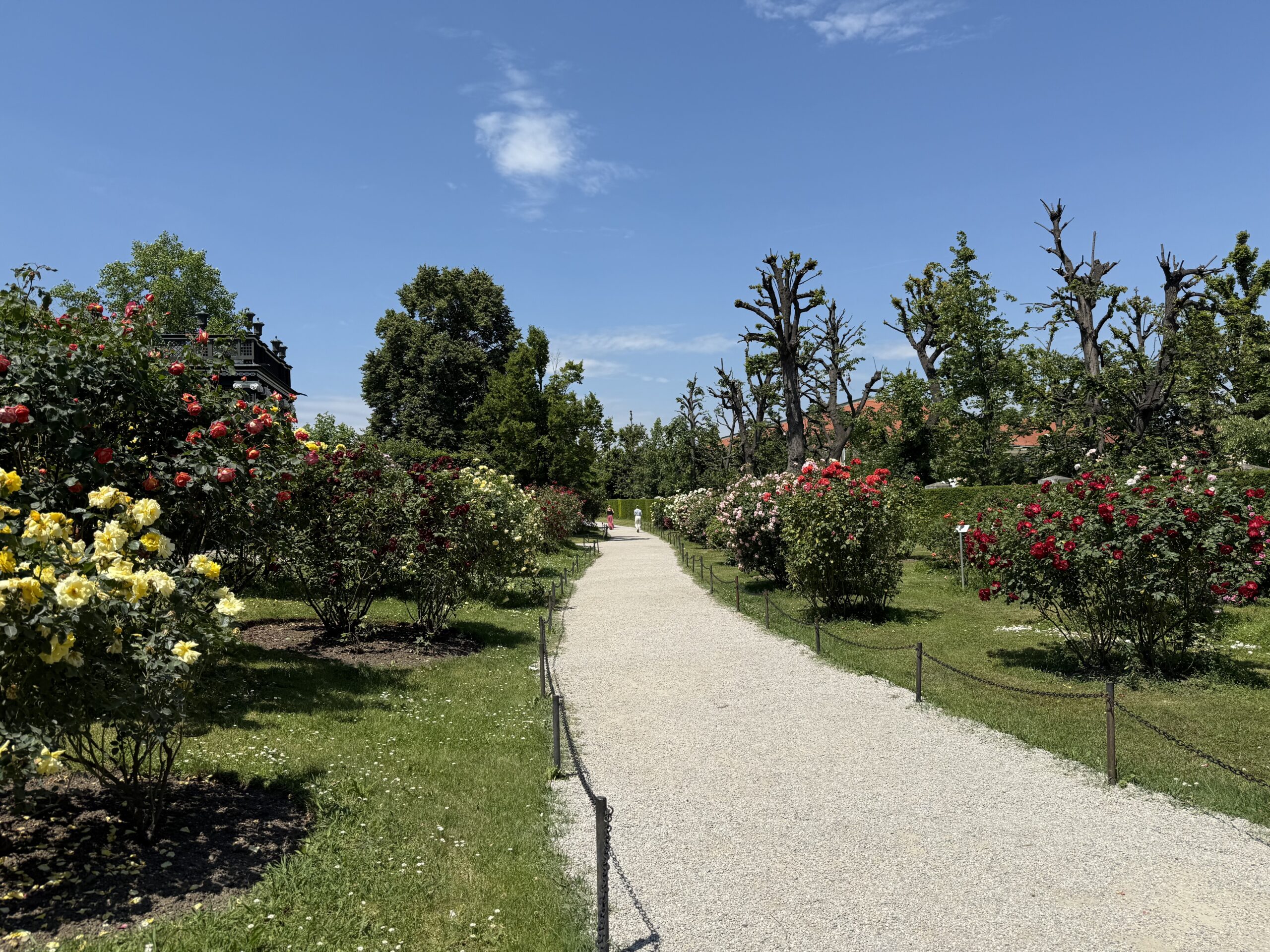 庭園では、今の時期バラが満載に咲き誇り、木々が生い茂る空間にベンチもあるので読書を楽しむ住民の姿も。