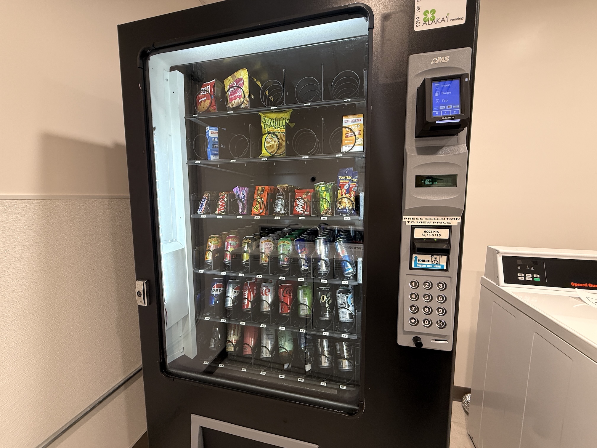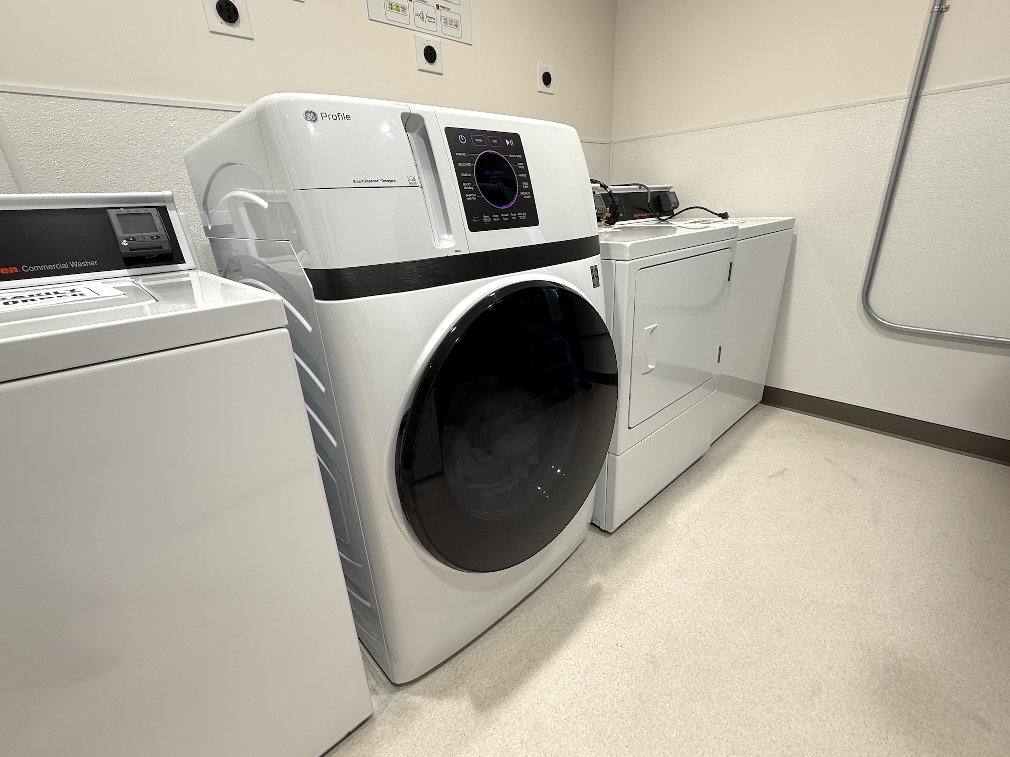 洗濯機や乾燥機、自販機もあるロッカールームも見学しました。