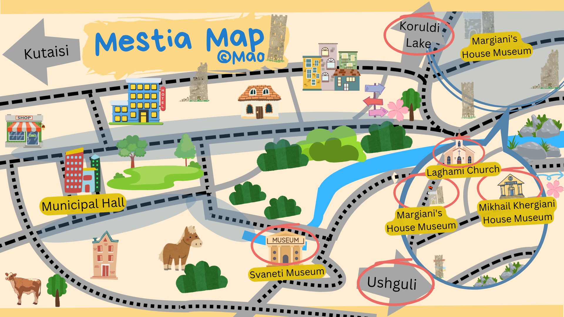 1箇所は公園名はSgimieri Parkと言いますが、地図上には表示されないので、公園前の銀行の地図を目印に貼っておきます。もう一箇所は24年夏にできたばかりのMestia Adventure Parkです。(共に入場無料)