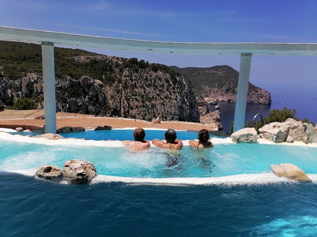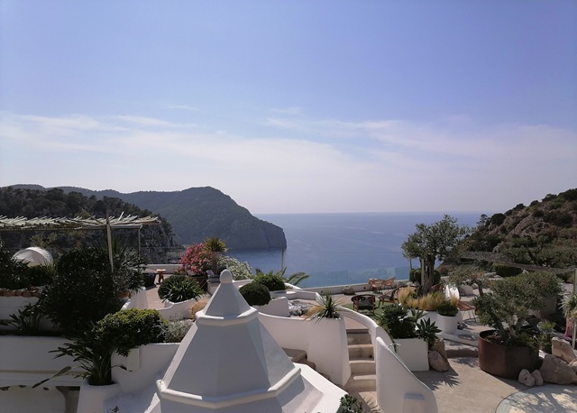 イビサ島北東、サン・ミゲルの町を通り越してさらに海に向かって5・6分。山の中にある、ホテル・アシエンダのウェルネスは充実しています。絶景を見ながら入れるSPAや、マッサージ、フェイシャルトリートメントは勿論のこと、ヨガのグループセッションやウォーキングにも参加することができます。