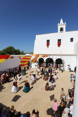 イビサからサンタ・へトゥルーディスの村を過ぎると、道はまっすぐ一本道。遠くに丘の上にある教会が見えてきます。サン・ミゲルの教会は、サンタ・エウラリアの教会と同様に、海賊から村の人々を護る要塞の役目を果たしてきました。教会では6月から9月の間、イビサのフォークロアダンス(baile payes)を見ることができます。それに合わせ教会前では小さな市(メルカディージョ)が催されます。