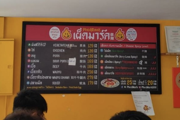 「ペッドマーク」というお店の名前、「ペッド(เผ็ด)」はタイ語で「辛い」、「マーク(มาก)」は「とても」の意味。つまり「ペッドマーク」とは「とっても辛い」という意味なんです。その名の通り、ガパオの辛さは5段階から選ぶことができます。