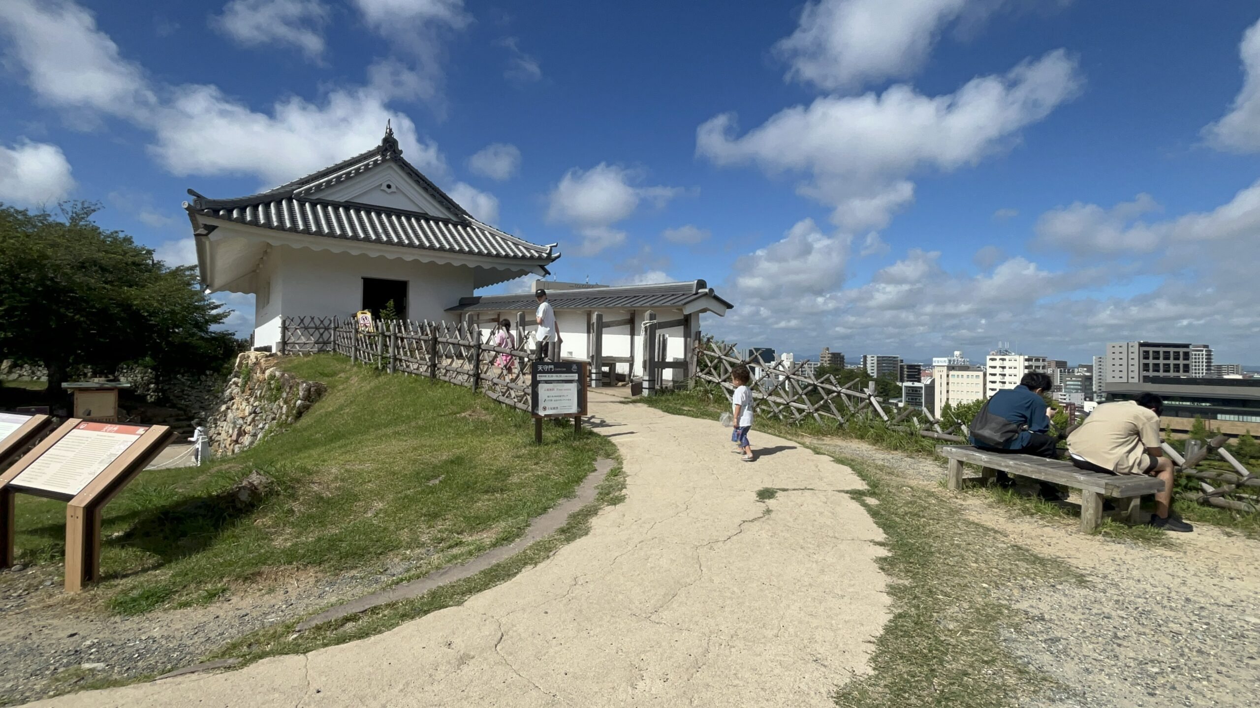 公園内にはちょっとした天守閣の他に、日本庭園、美術館や、子供が走り回れる芝生などもあります。