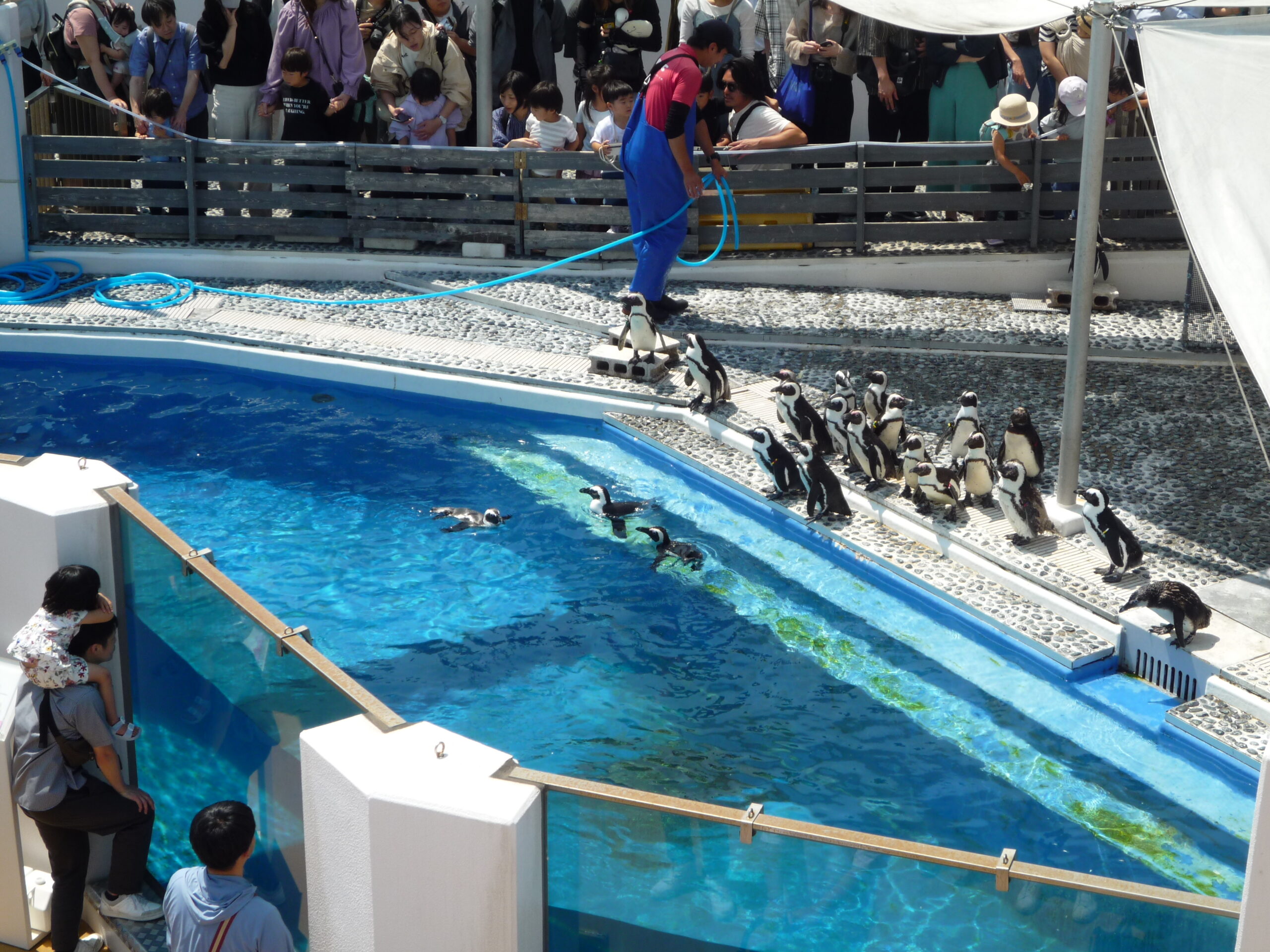 到着した時は、ペンギンショーの最中でした。歩く姿はヨチヨチと可愛いけれど、魚臭いんですよ~!