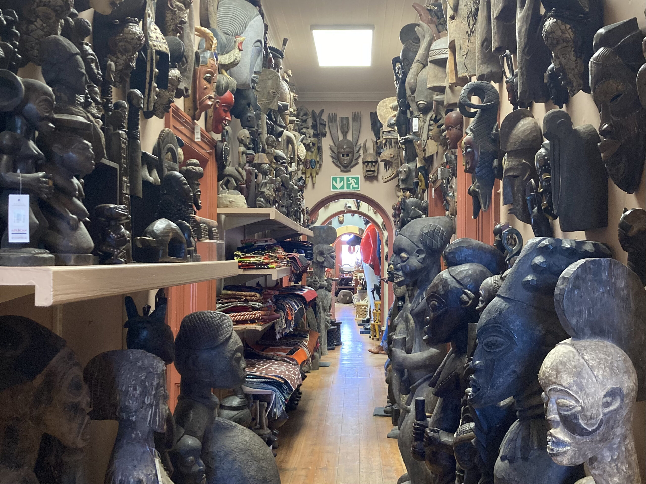 アフリカの伝統的な民芸品や雑貨の数々が揃うお土産やさんです。