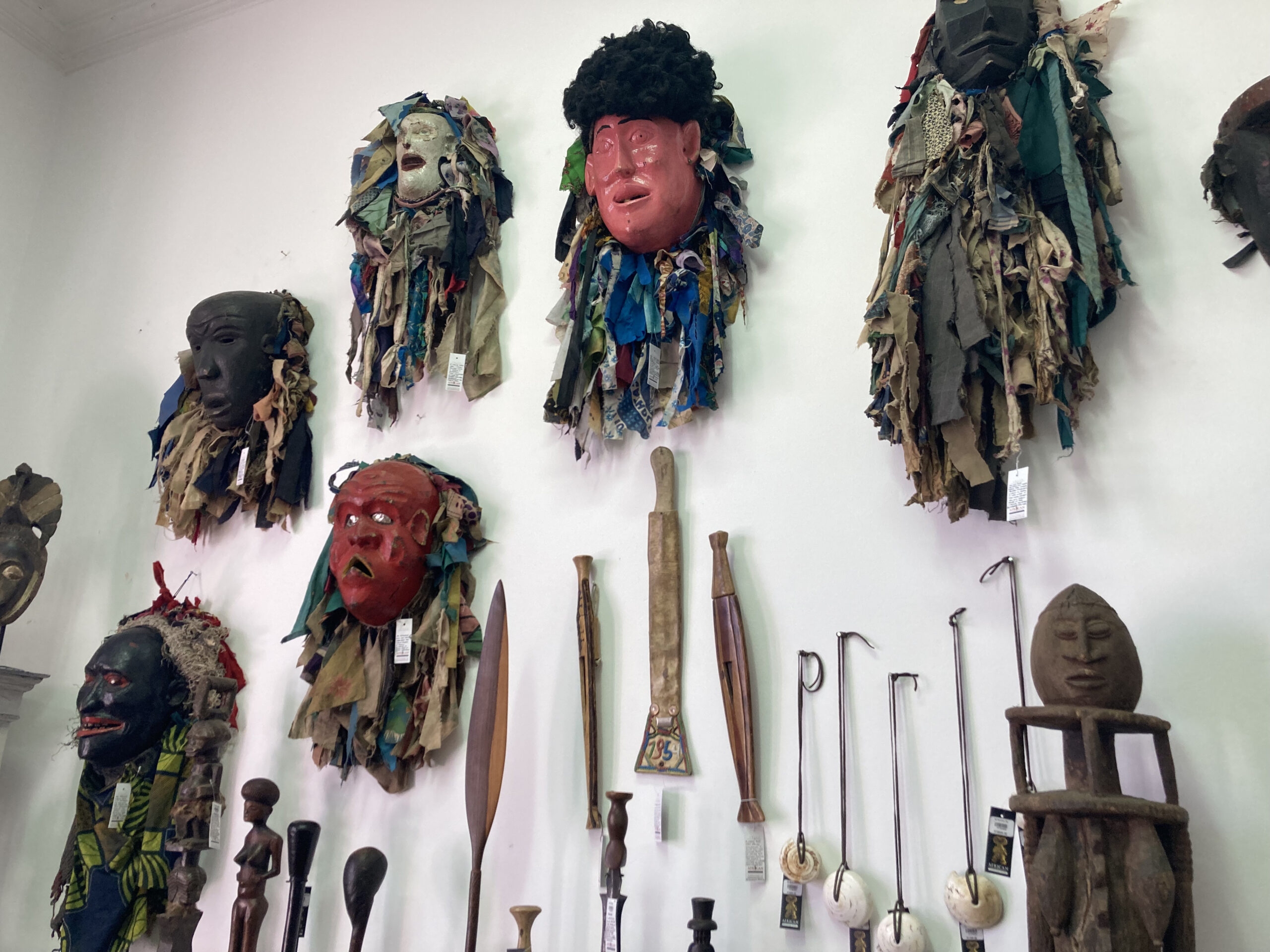 雑貨中心の1階だけでも十分見応えがあるのですが、私のおすすめは2階から上です。上の階へ進むほど、お面や武器、置物が増えていき博物館のような空間が広がっています。これだけの数のお面に囲まれる経験はなかなかできません。