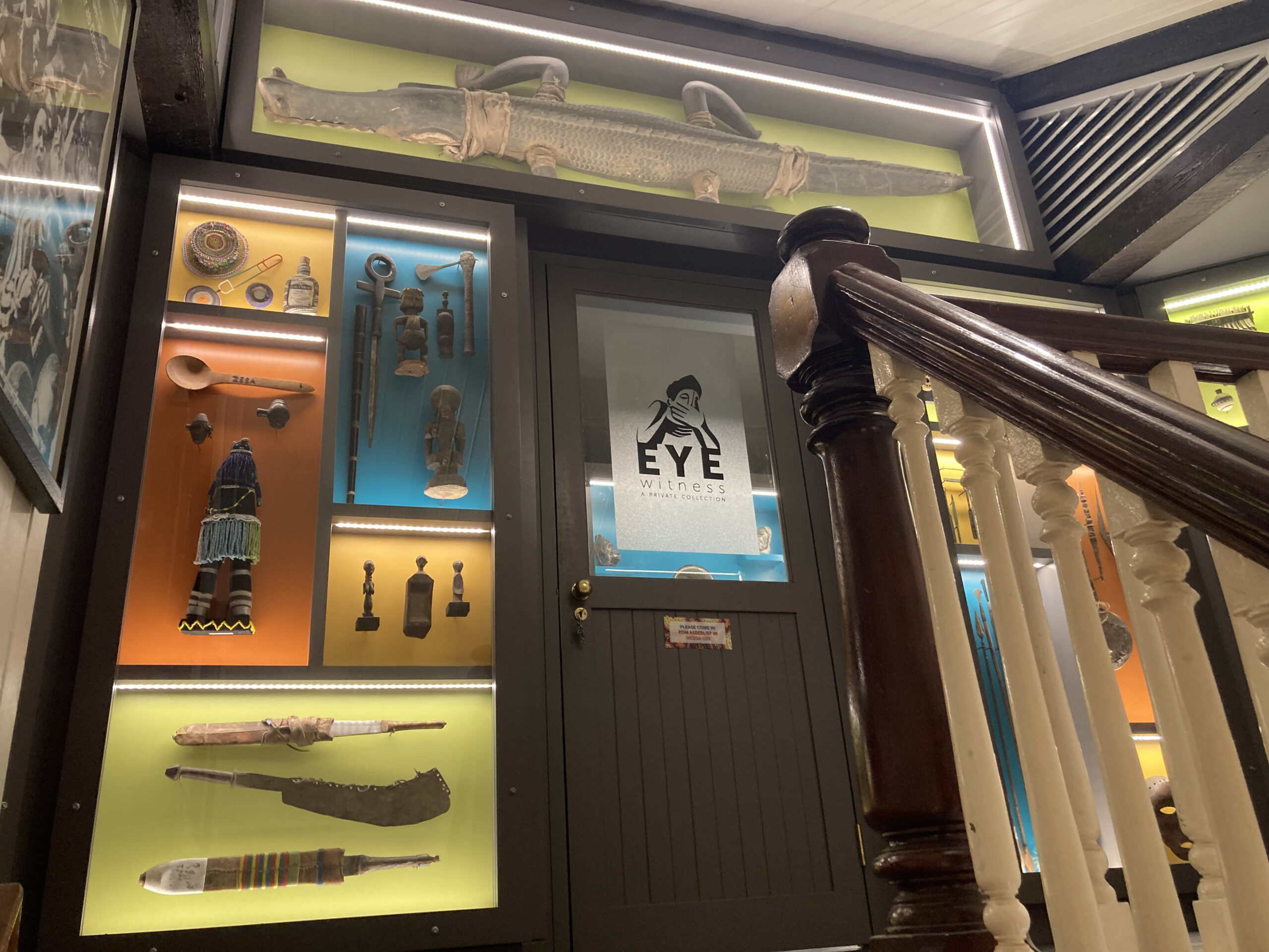 博物館みたいだなと思いながら階段を登っていくと、最上階には本当に博物館がありました。その名も「EYE WITNESS(目撃者)」です。ここには20年以上にわたってアフリカ中から集めたプライベートコレクションがショーケースに多数展示されています。是非訪れた方は最上階まで行って目撃してください。博物館は入場無料です。