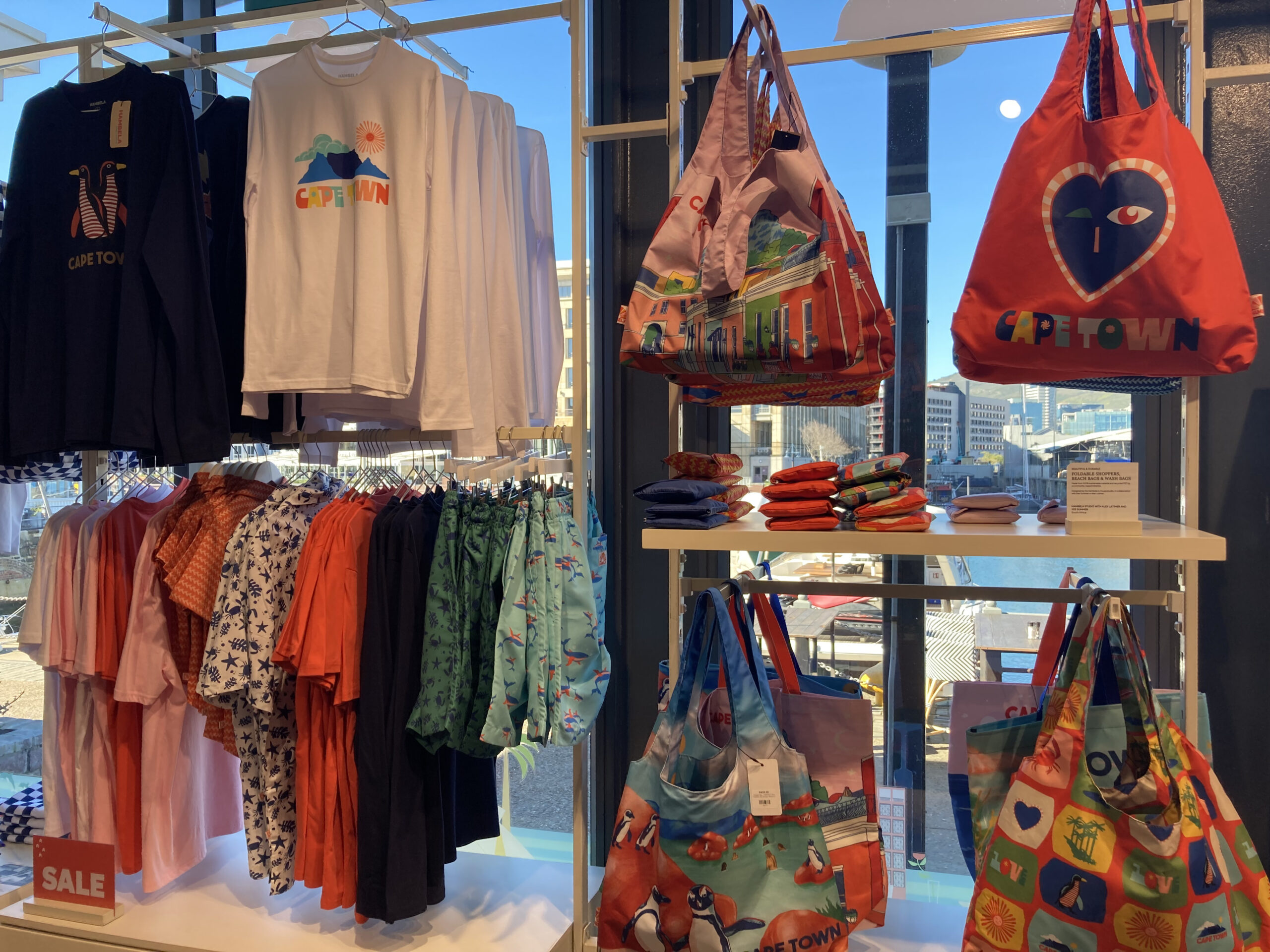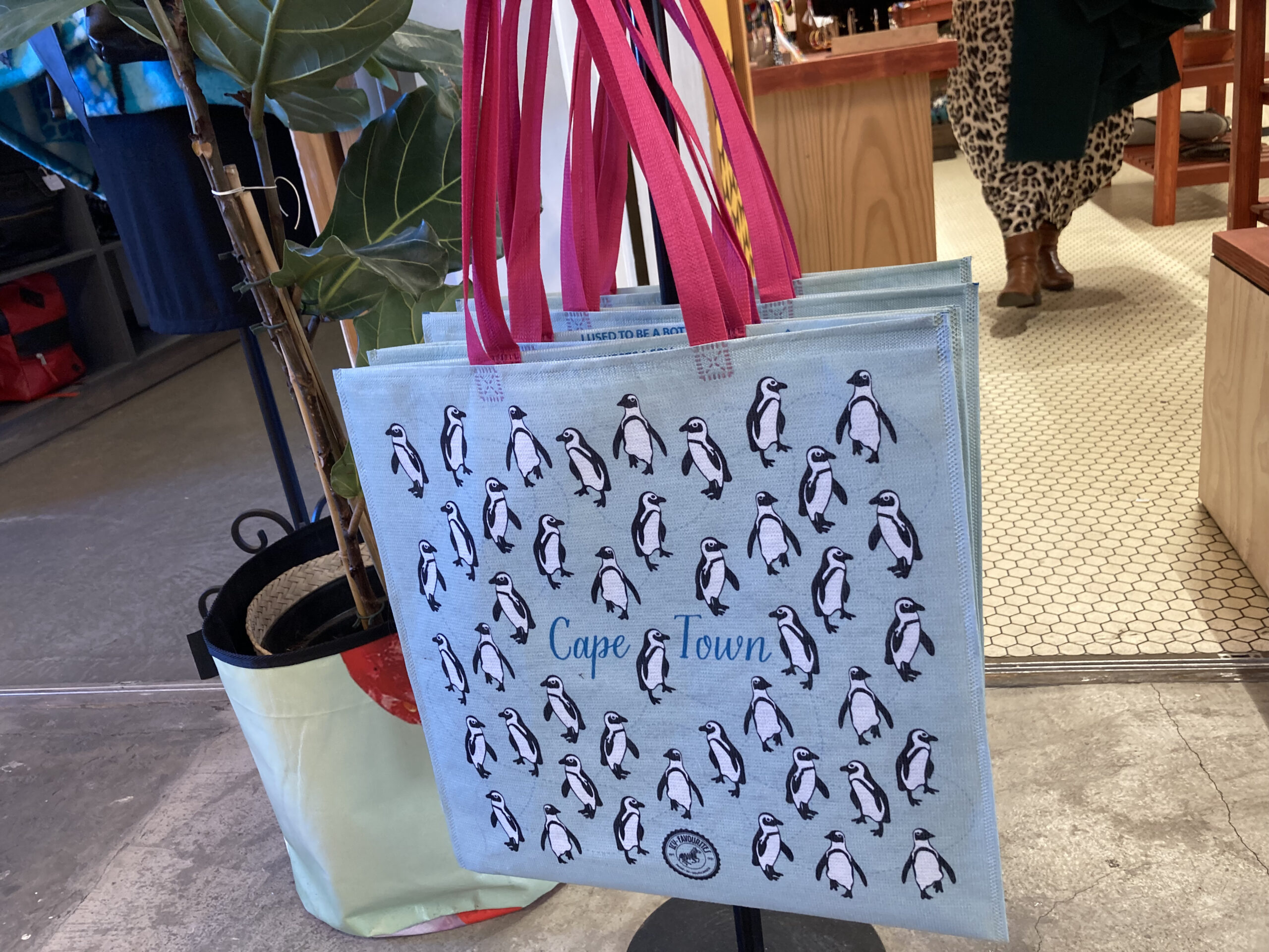 なかでもお店の奥にあるハンベラ(HAMBELA)というブランドのコーナーは、ポップでカラフルなデザインが目を惹きます。ケープタウンの観光名物のケープペンギン、テーブルマウンテン、カラフルな街並みのボカープなどといったモチーフのイラストの入った商品はお土産にぴったり。ハンベラはこのお店(AAFRICAA)と提携しているブランドなので、ここでしか手に入らないグッズばかり。