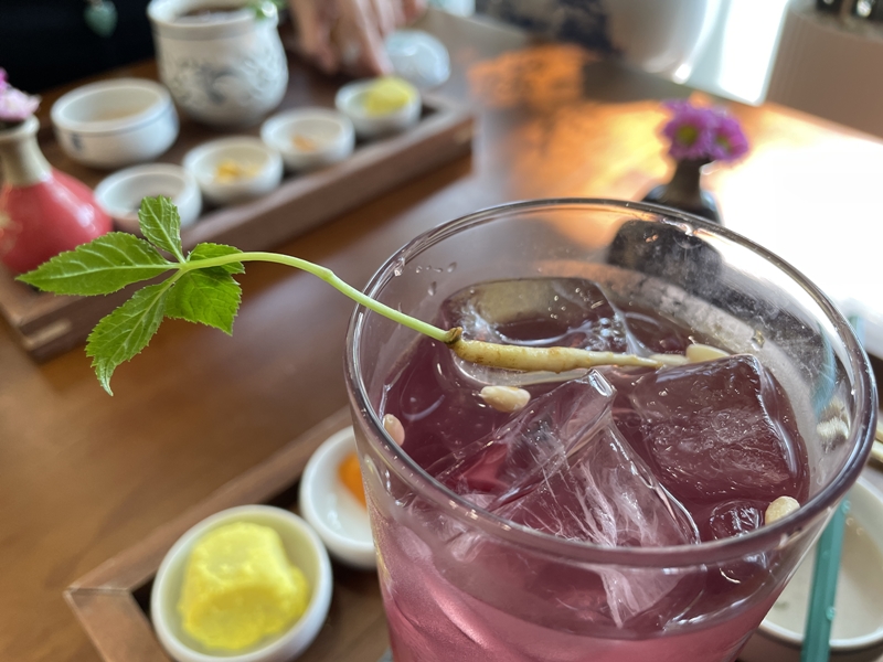 お茶の中には小さい高麗人参が入っていました。松の実も入っていて、体にいいものばかりです。