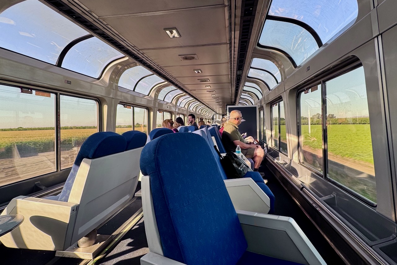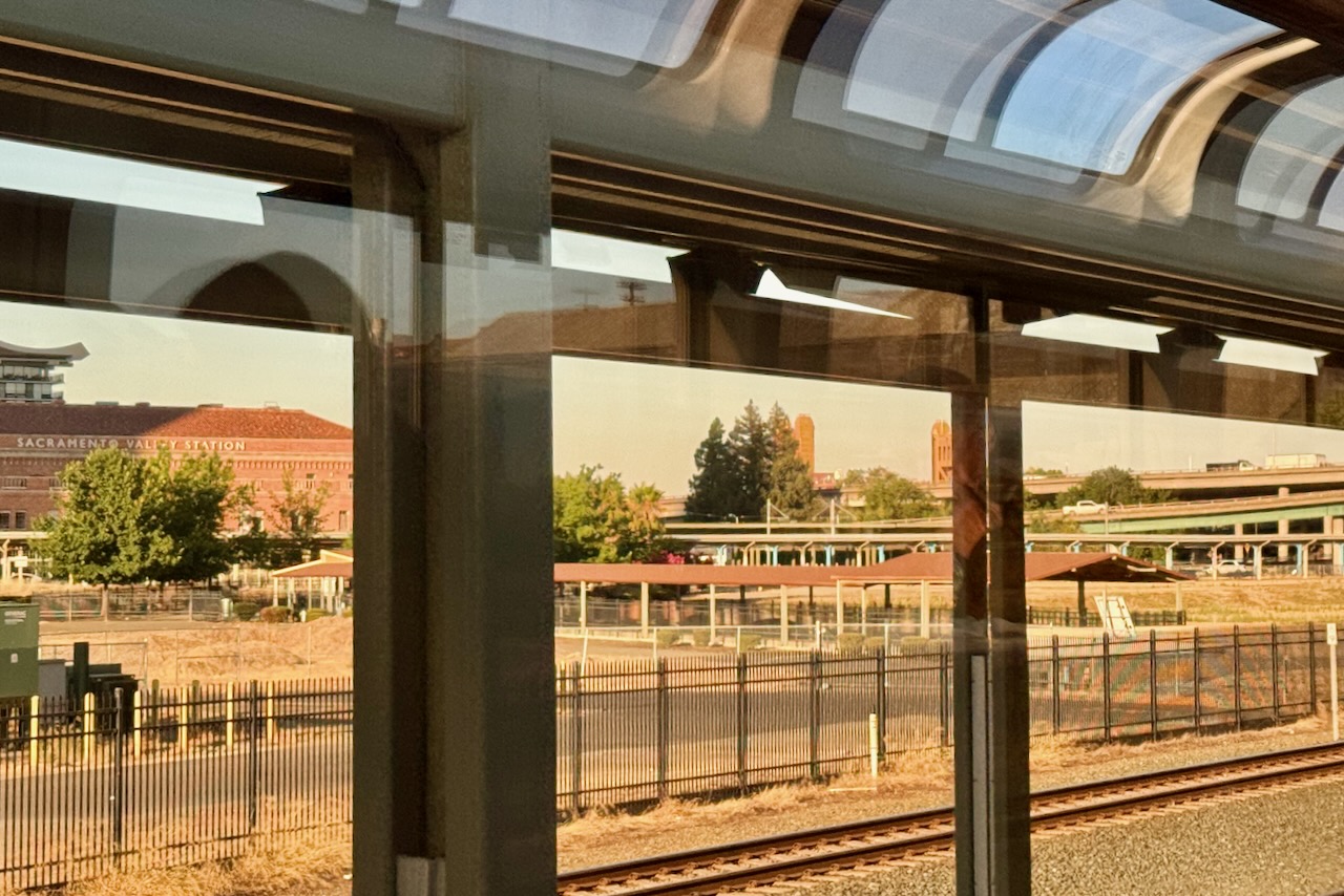 シアトルを出発して一夜明け目が覚めたらまもなくサクラメントに到着。カーテンを開けるとアメリカンリバーが見え、木々の間に朝日が差し込んでいました。サンフランシスコに到着するまでの数時間。またまたラウンジで過ごすことにしました。ラウンジカーへ向かえば、同じように眠気まなこの人たちが窓辺に集まり、無言で景色を楽しんでました。コーストスターライトの旅の”早起きは三文の徳”小さなご褒美。サンフランシスコへもう一走り!