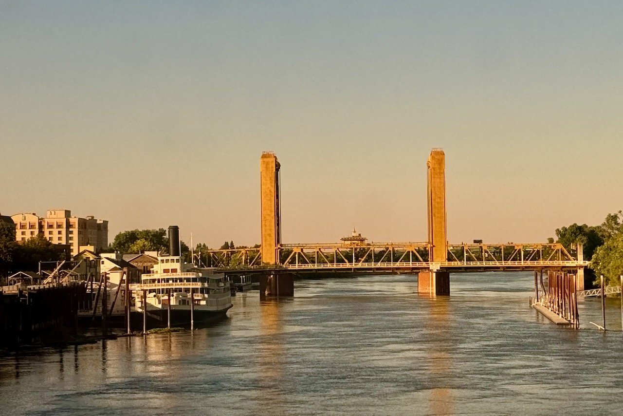 タワーブリッジが完成したのは、ゴールデンゲートブリッジより古く1935年です。見事なまでの金色は一度見たら忘れないほど印象に残ります。船が通過する時、道路が真上に上がる”垂直リフト方式”サクラメントの人口増加に伴い、ウエストサクラメントとサクラメントを繋ぐ橋として作られました。今でも現役のタワーブリッジが稼働する様子は、機会があったら是非とも見てみたい!