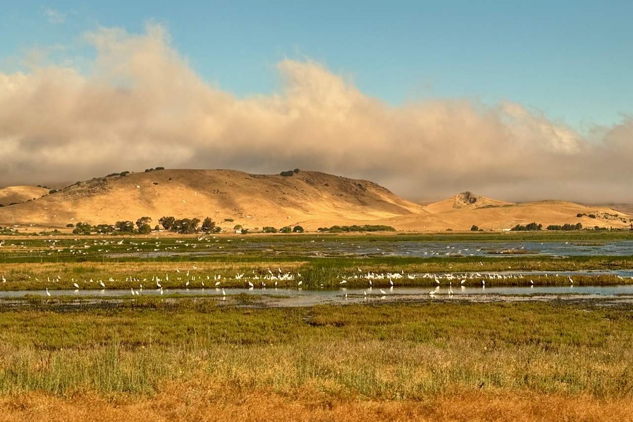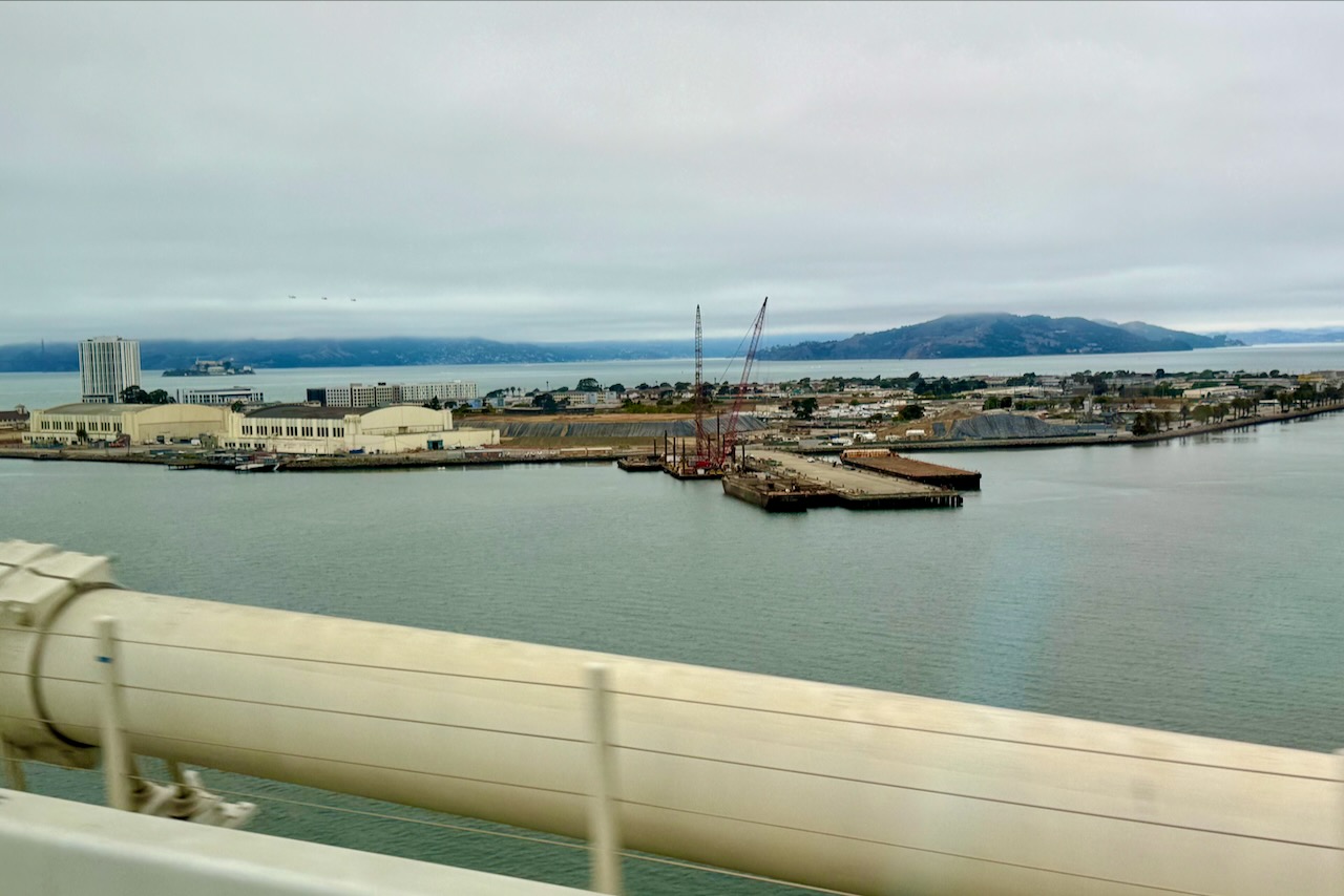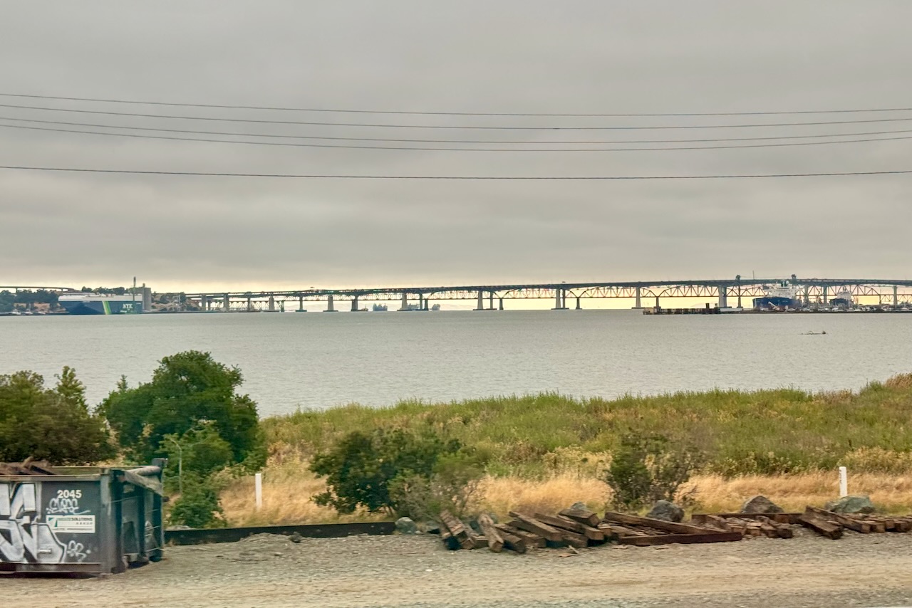 サクラメントを出発すると、列車はカリフォルニアの乾いた丘陵地帯を走り始め、サクラメント・デルタに差しかかります。入り組んだ水路脇を渡る鉄橋からは、びっくりするほどの水鳥の群れが見え、朝霧のなかで羽を休める鳥やゆったりと羽ばたきながら空へ舞い上がる様に目を奪われます。車窓からバードウォッチング!湿地帯に広がる豊かな生態系は、アメリカ西海岸の自然の懐の深さを感じますが、あれよあれよと夏の霧が一気に空を覆い、サンフランシスコに近づいているのを知らせてくれます。