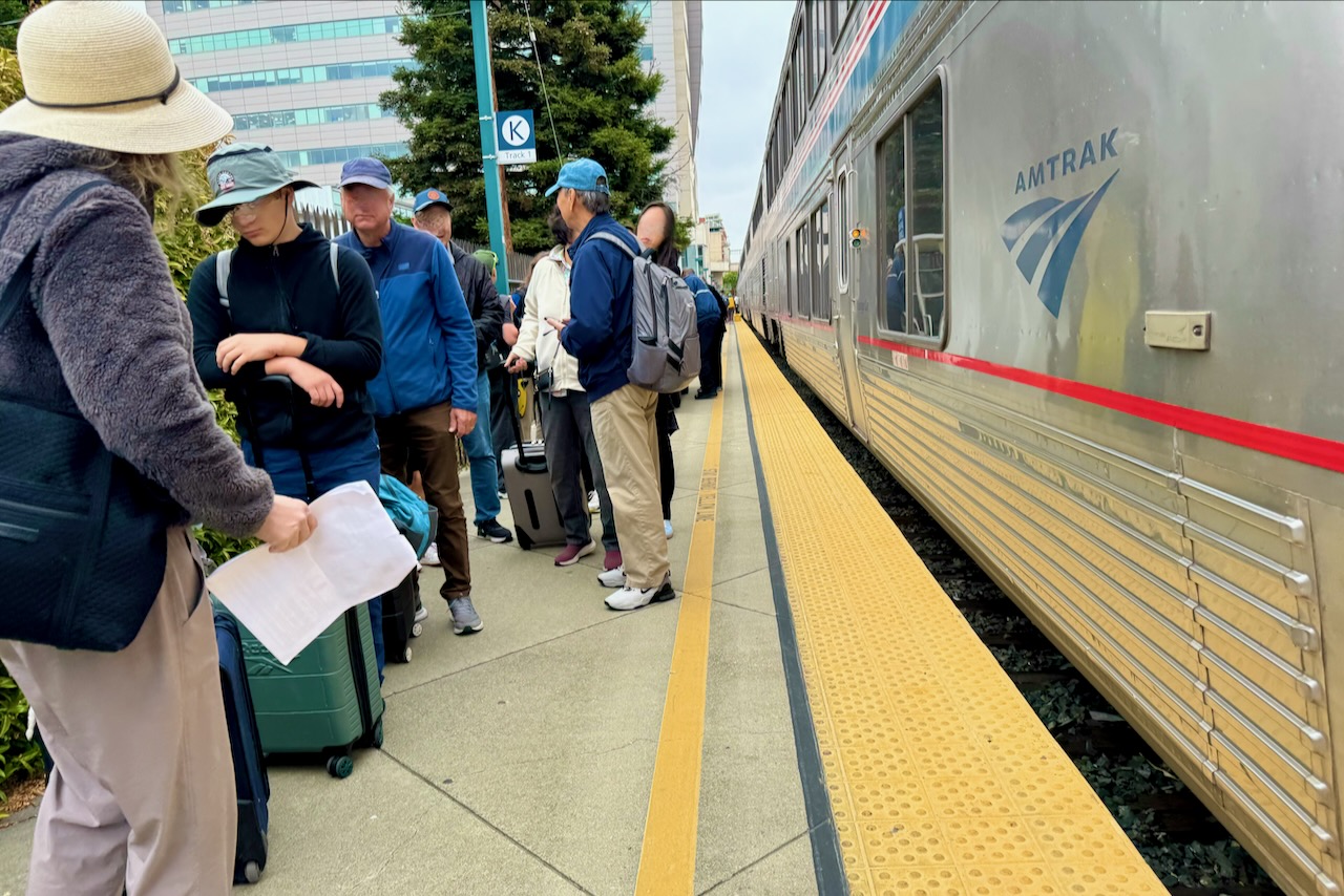 レンガ造りの駅舎にはアメリカ鉄道史を物語る堂々とした風格があります。ここから乗り込んでくるのは旅行者だけでなく通勤客もあり、日常の街のリズムがありました。私は2時間ほどで降車しますが、LAに向かう長距離列車の旅行者にとってはまだ朝の序章です。