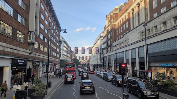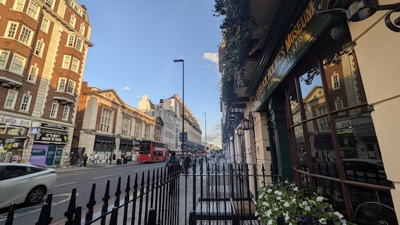 東京で言う銀座や新橋の裏口のような、あまり車通りの多くないビル区画をイメージしていたので、大通りであることはしっくり来ませんでした。しかし、それは、昔見たジェレミー・ブレッドがシャーロック/ホームズを演じたBBCのドラマ、シャーロック・ホームズの冒険からの筆者の思い込みかも?