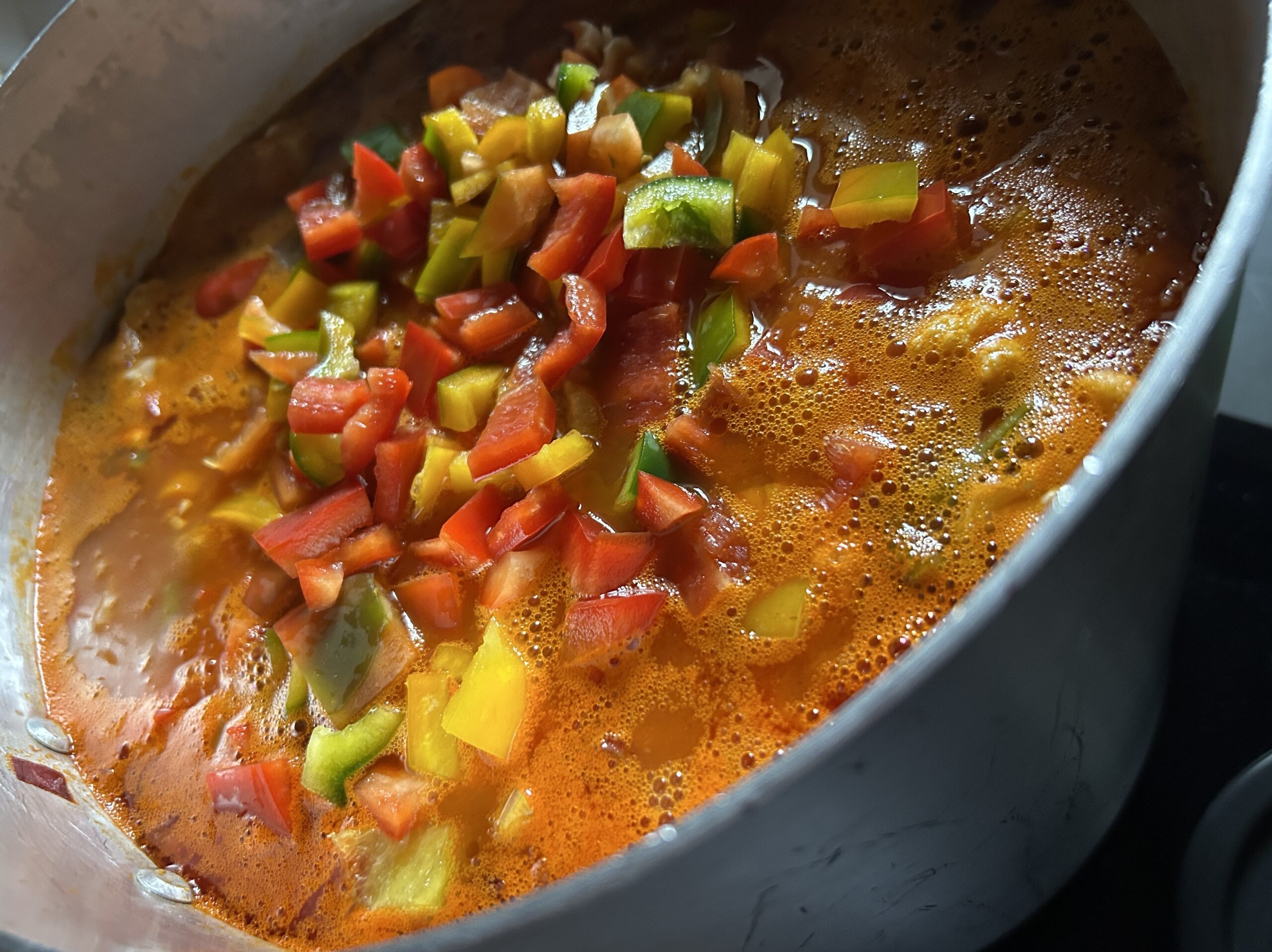 アンティパスト ピエモンテーゼは、もともと夏の終わりに収穫した夏野菜を保存するために生まれました。材料は、夏の主役 トマト!そして、パプリカ、さやいんげん、カリフラワー、小玉ねぎ、セロリ、人参などの季節野菜です。まずは、トマトソースをつくります。各野菜の下処理後、それらをトマトソースで軽く煮込み、オリーブオイル、お酢を加え再度煮込みます。季節野菜の甘味とトマトと酢の酸味が調和し食欲をそそる味わいとなります。