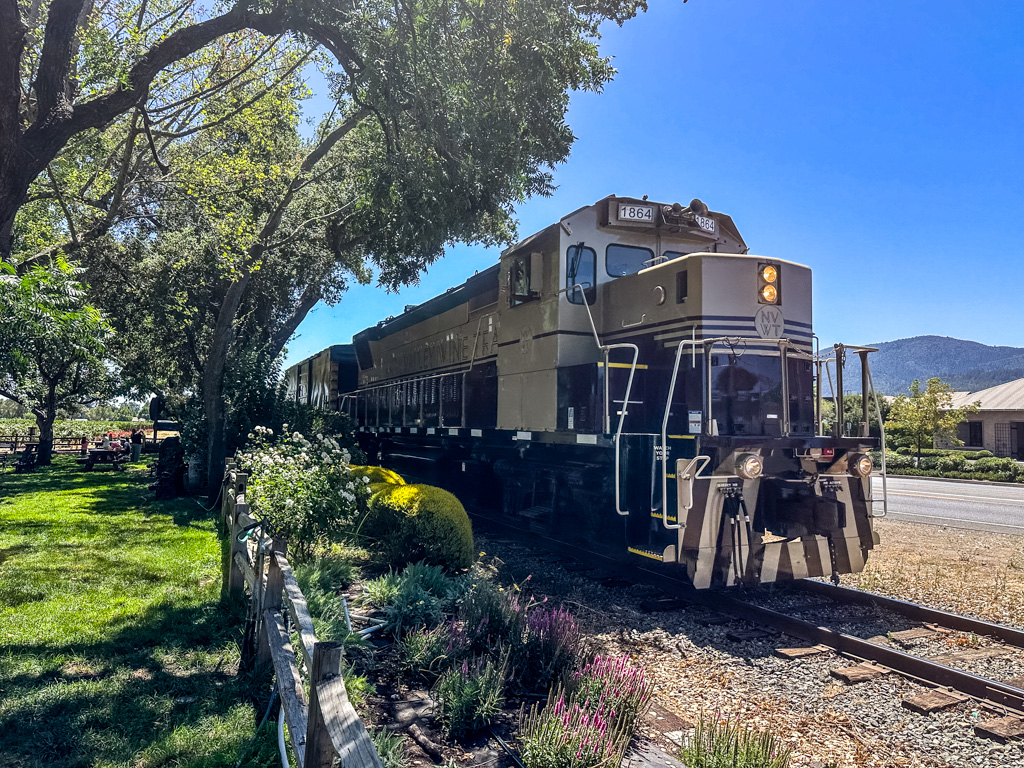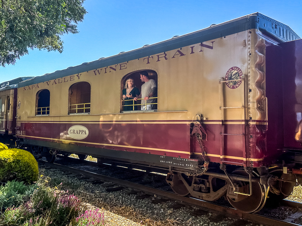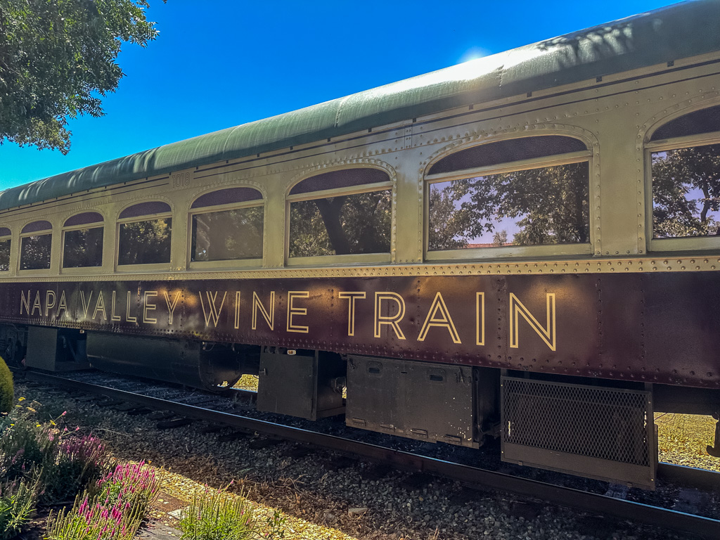 ナパ市発の食堂車に乗って、美味しい食事を楽しみながら、ナパバレーの景色を楽しめます。ワインはお好みで選べます(料金別)