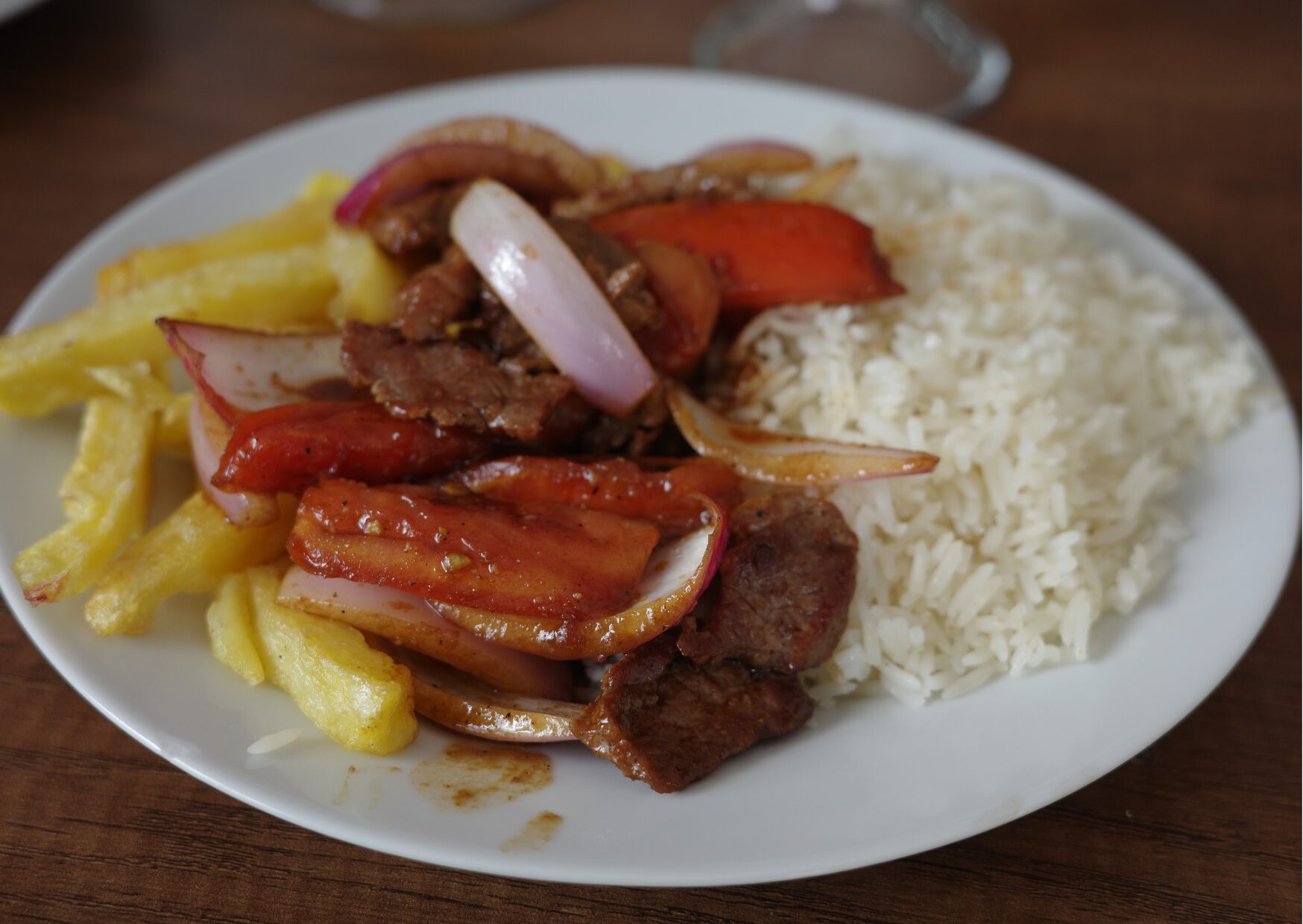 そして、メインプレートの定番は、たいてい肉または魚料理に、ご飯と豆の煮込みなどが添えられます。ペルー料理の代表である「ロモ・サルタード(Lomo Saltado/牛肉とトマト、玉ねぎ、ポテトフライのしょうゆ炒め)」や、「アヒ・デ・ガジーナ(Ají de Gallina/ペルー版シチューカレー)」なども人気です。