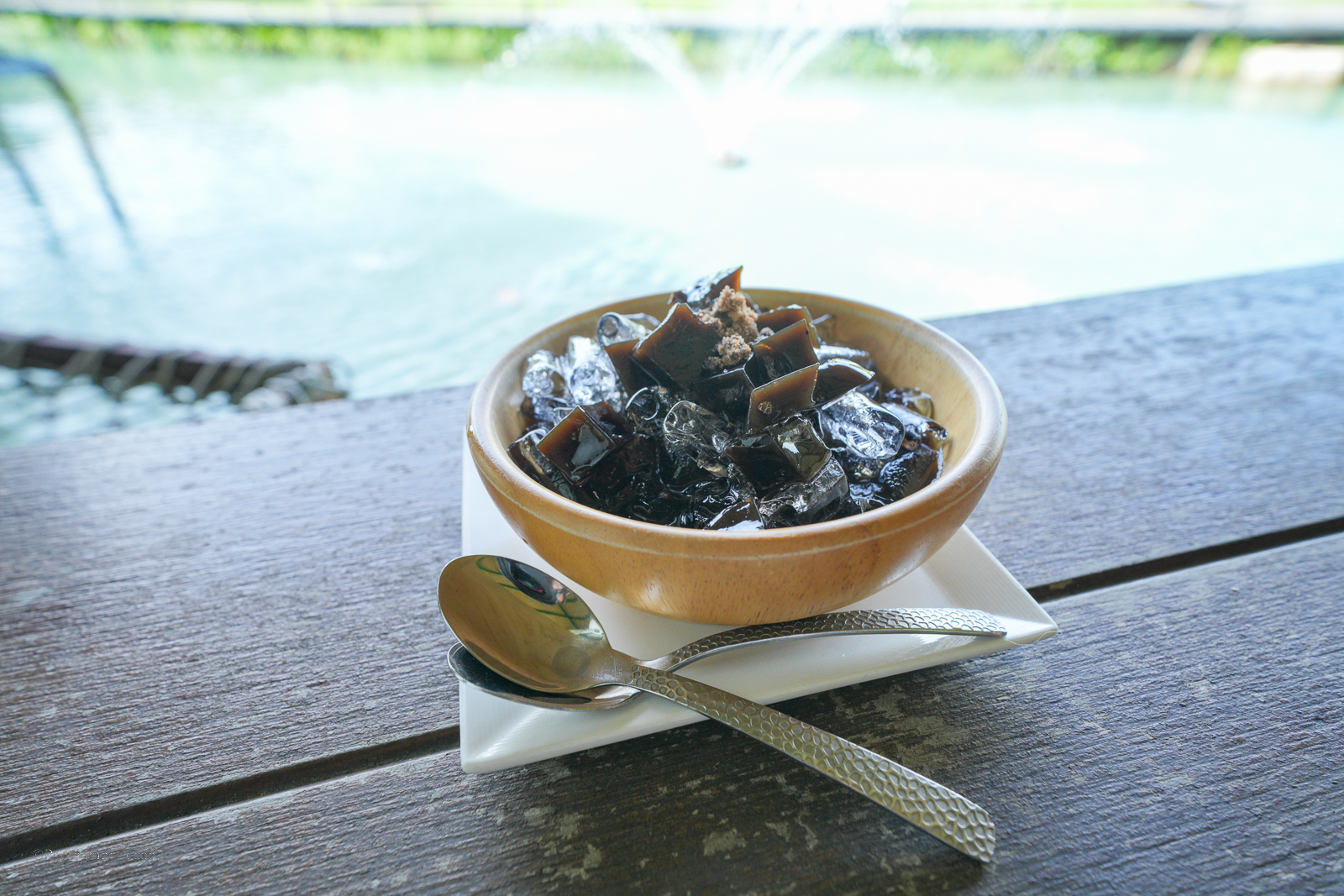 日本語では、「仙草ゼリー」と紹介されることが多く、仙草ゼリーの原料の仙草は中国原産の植物で、中国や台湾等でも、低カロリーで体に良いデザートとして食べられているようです。