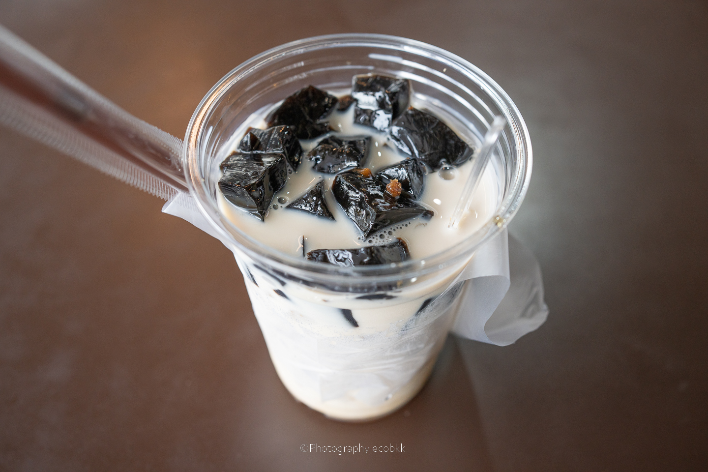 見た目は、コーヒーゼリーに似ており、ほんの少しもっちりしたゼリーですが、硬いと感じるものではなく、さっぱりいただけます。タイでは、チャオクワイ自体には甘さがほぼないので、甘いシロップと氷と一緒に提供され、上には、黒砂糖がかけられていることが多いです。または、牛乳や紅茶等に入れてドリンクとして販売されていることもあります。