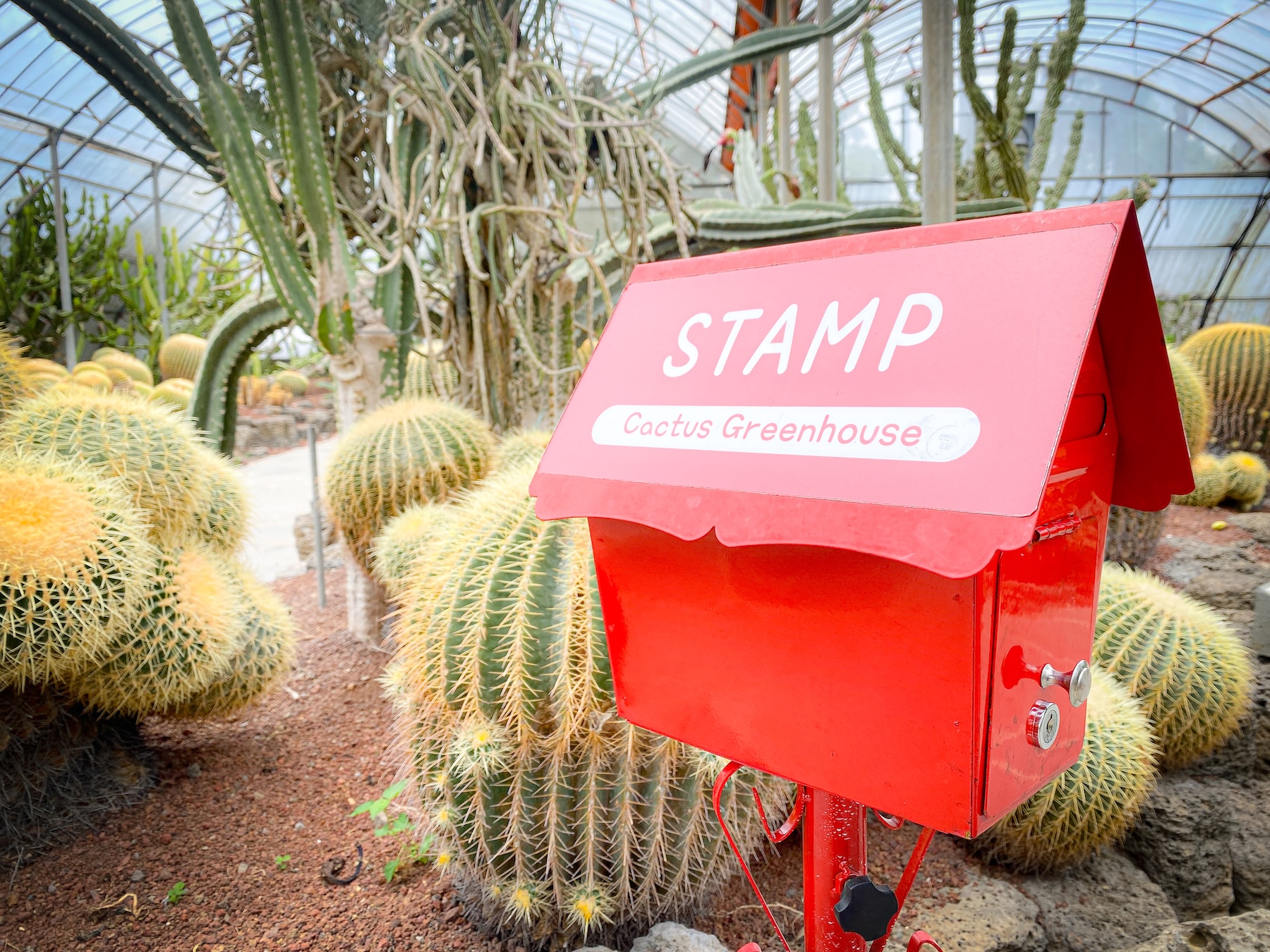 でも、日出ランドのすごいところは溶岩洞だけではありません。なんとここ、動物園や植物園まで楽しめるんです。敷地の奥には「サボテン温室」も。温室内には、可愛らしい赤いポストがあり、思わず写真を撮りたくなってしまうスポットがたくさん。敷地内は小一時間でぐるりと回れる広さですが、チェジュ島の自然を、ここ1箇所で満喫できます。