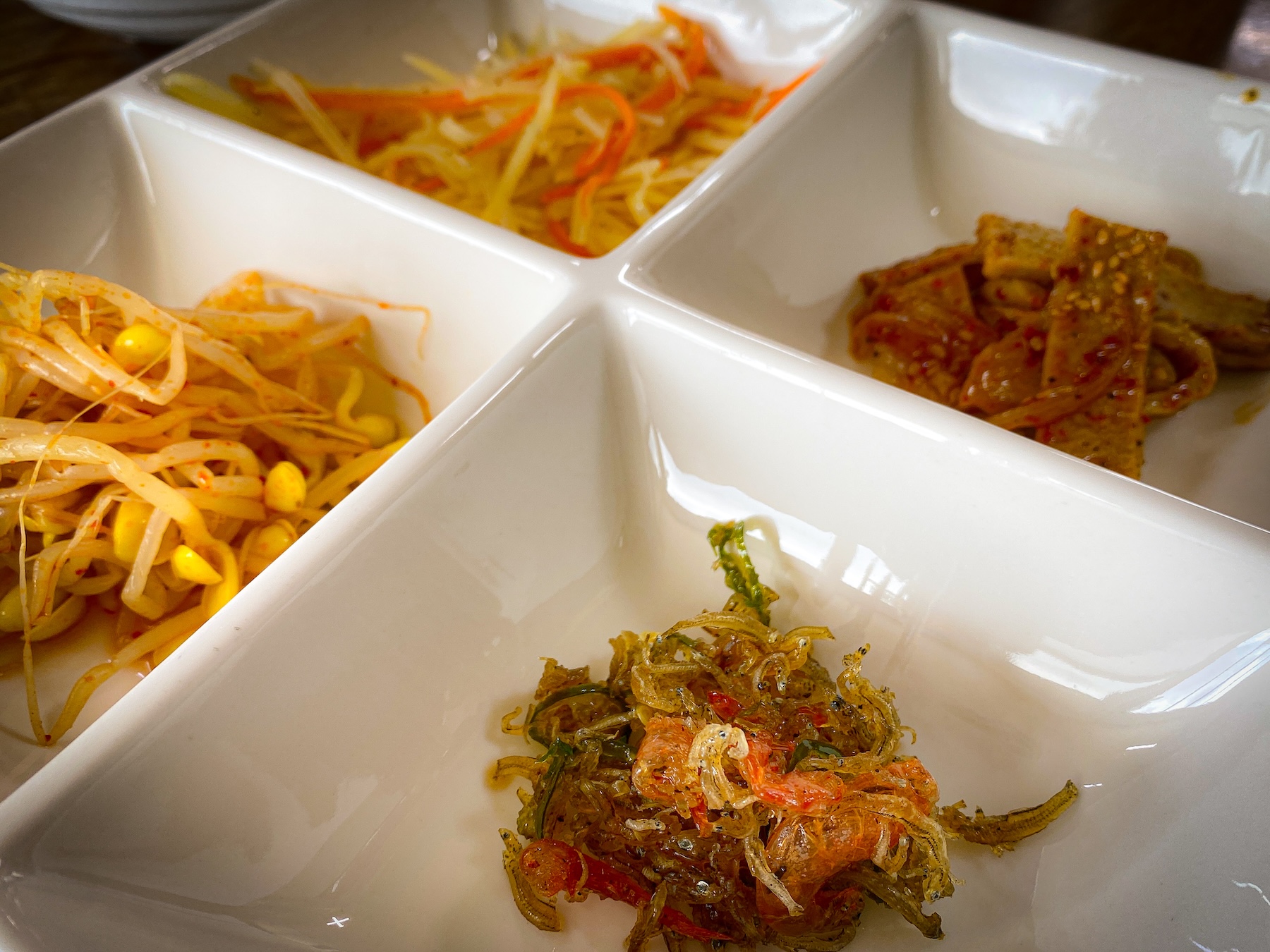 山の麓の街には、たくさんの飲食店が並びます。今回は、地元の方がおすすめの、チヂミと鮑の純豆腐をいただきました。程よい辛さで、白米を何杯でも食べられそう。登山で空腹だったのか、一気に食べ進めてしましました。下山後は、新鮮な魚介でお腹を満たしてお帰りください。