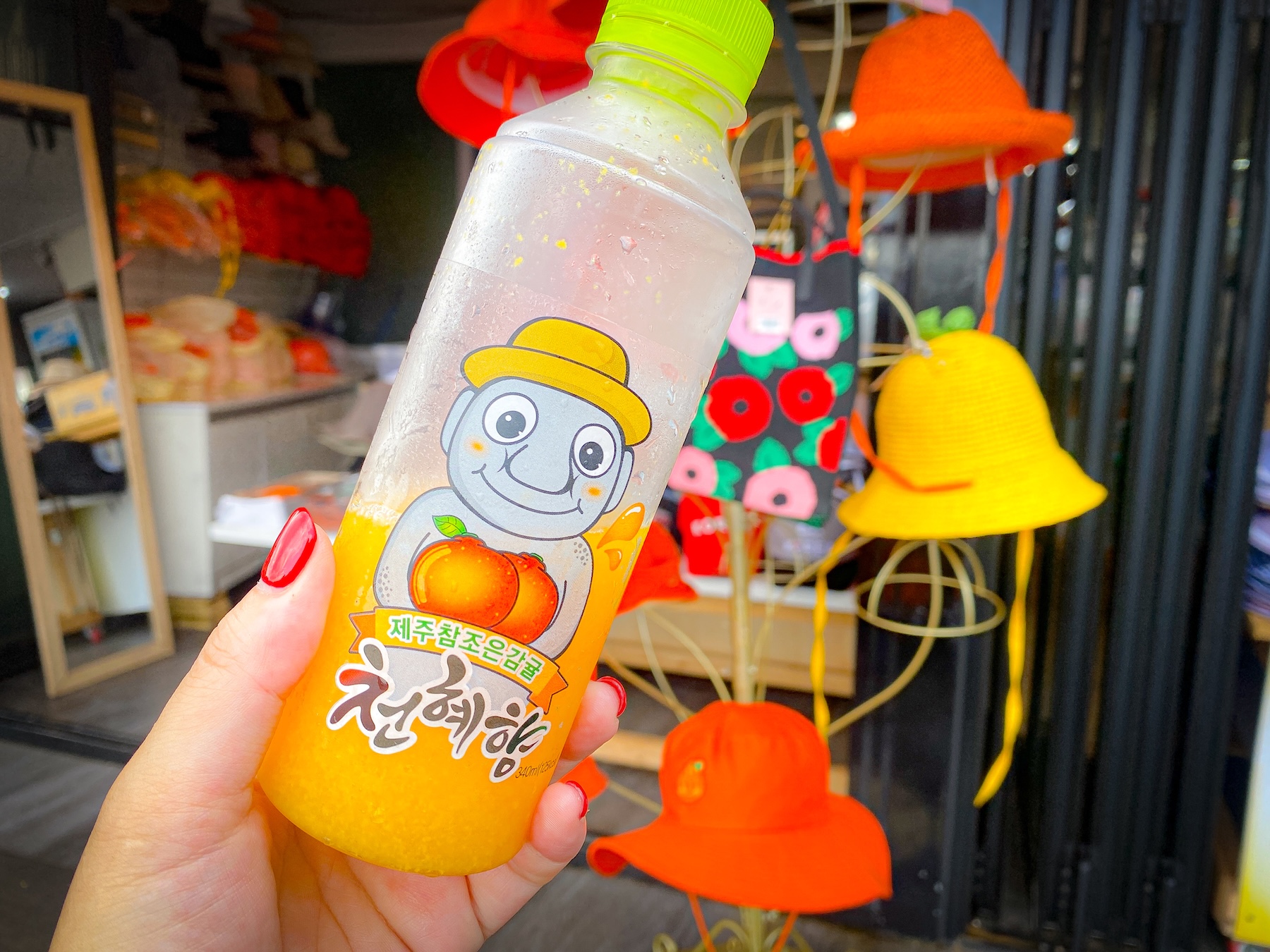 一本道で、標識も多いので迷うことなく頂上に辿り着けます。頂上からは、きれいな海が見渡せ、心地よい風が吹き、何時間でもいられそう。下山後は、チェジュ島名産の「みかん」ジュースを飲むと疲れた体に染み渡ります。