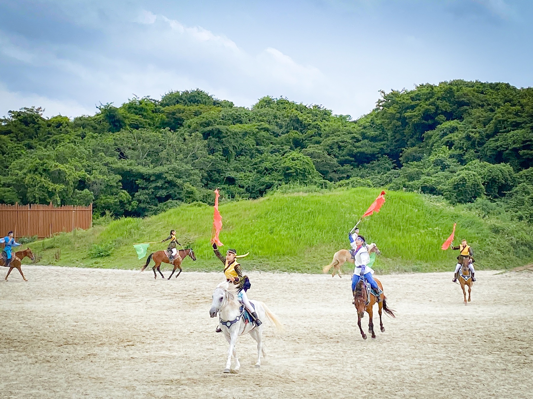 「ザ・馬パーク」はチェジュ島にある有名なテーマパーク。敷地内では乗馬やゴーカート、モンゴル騎馬ショーなどが楽しめます。ショーは、生演奏を響かせながら、大迫力の戦いが目の前で繰り広げられドキドキが止まりません。1時間にも及ぶショーは見応え抜群!ショーの最後には、馬にニンジンをあげることもできますが、グイっと引っ張られるので、ご注意を。