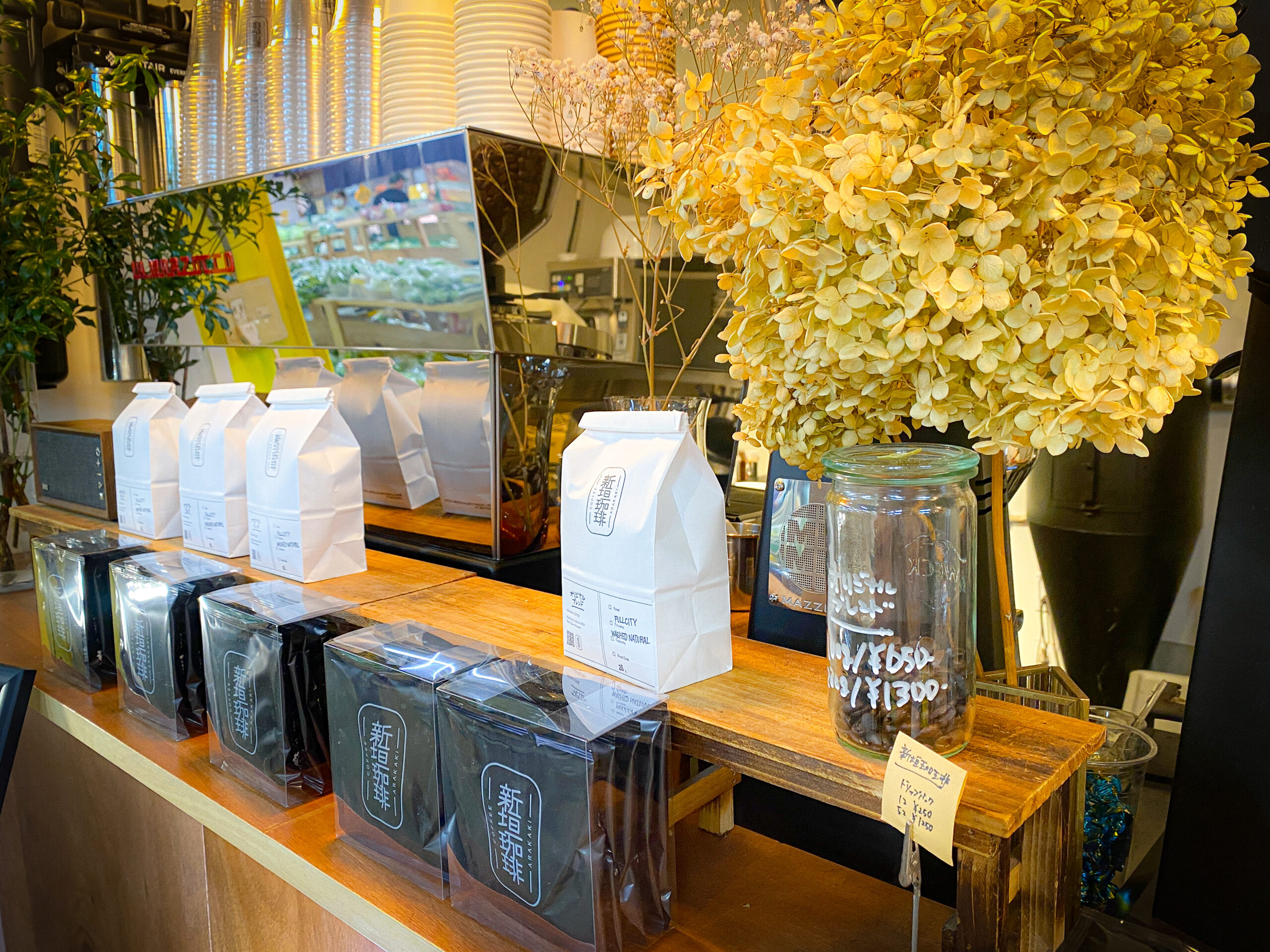 那覇でレンタカーを借りるなら、少し足を伸ばして訪れたいのが「新垣珈琲」。農産物直売所「アグリハウスこちんだ」内にあるコーヒー専門店です。長蛇の列…というわけではないですが、列が途絶えない人気ぶり。地元の方からも愛されているのがよくわかります。