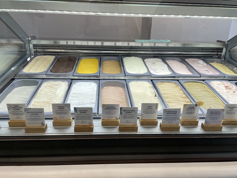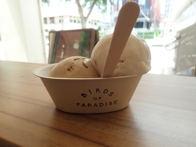 前述した328 Katong Laksaの並びにあるジェラート専門店、Birds of Paradise Gelato Boutique。ミシュランガイドに掲載されている人気店です。たくさんの種類の中から、筆者が選んだのはパンダンココナッツキャラメルとアールグレイ&レモングラスです。どちらも濃厚な甘さで暑さが和らぎました。試食させてくれるので、好きな味を選んでみてください。他にはマンゴー、ココナッツ、ライチなど南国フルーツのフレーバーがありました。シングルは5.50、ダブルは10シンガポールドルです。ワッフルコーンはその場で焼いていました。チャンギ国際空港内のジュエルにも店舗があります。