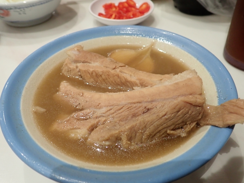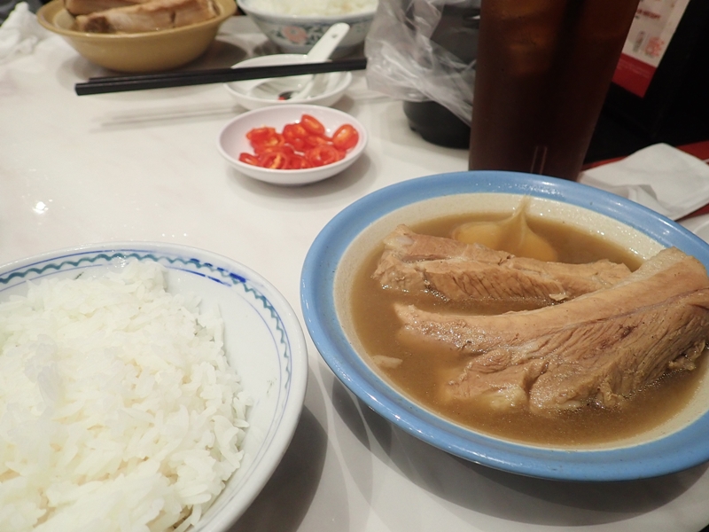 バクテー(豚肉のスープ)といえば、Song Fa Bak Kut Tehが名店で人気です。しかし、クラーク・キーエリアのお店の訪問時、40分待ちで筆者は待つことができず、向かいのお店NG AH SIO Bak Kut Tehで食事しました。こちらも老舗のお店で行列ができていましたが、すぐに食べることができ、おすすめです。コショウとニンニクがきいているスープに食べ応えのあるスペアリブがおいしかったです。スープは店員さんが注ぎ足してくれます。スペアリブのバクテーは11.80シンガポールドルでした。