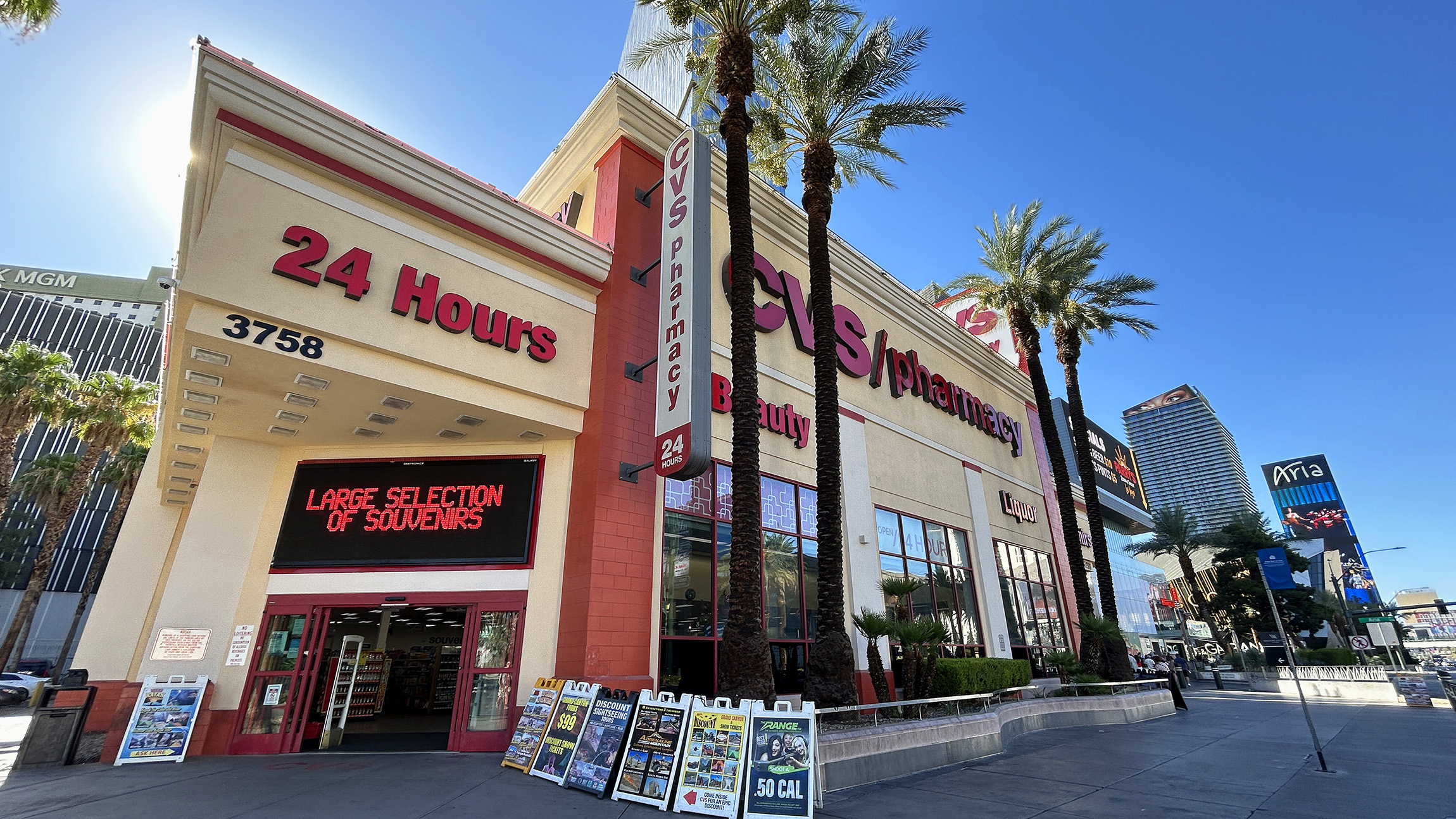 CVS/pharmacy(以下、CVS)は全米に9000店舗以上を展開する大手ドラッグストア&コンビニエンスストア。ストリップ沿いには3店舗(Park MGM、Horseshoe Las Vegas、Treasure Islandの各ホテル並び)あり、すべて24時間営業のため観光客にとって心強い存在です。