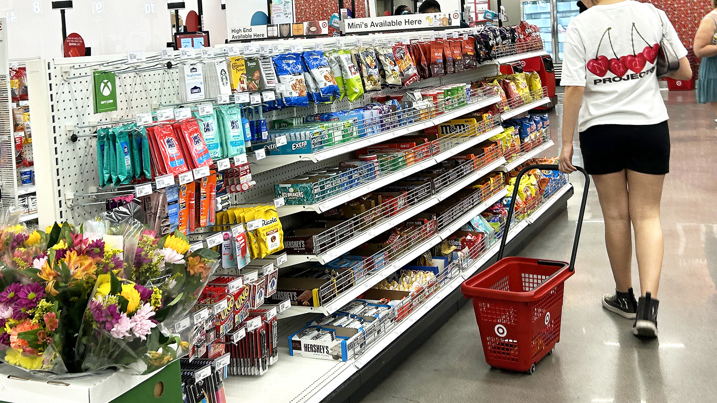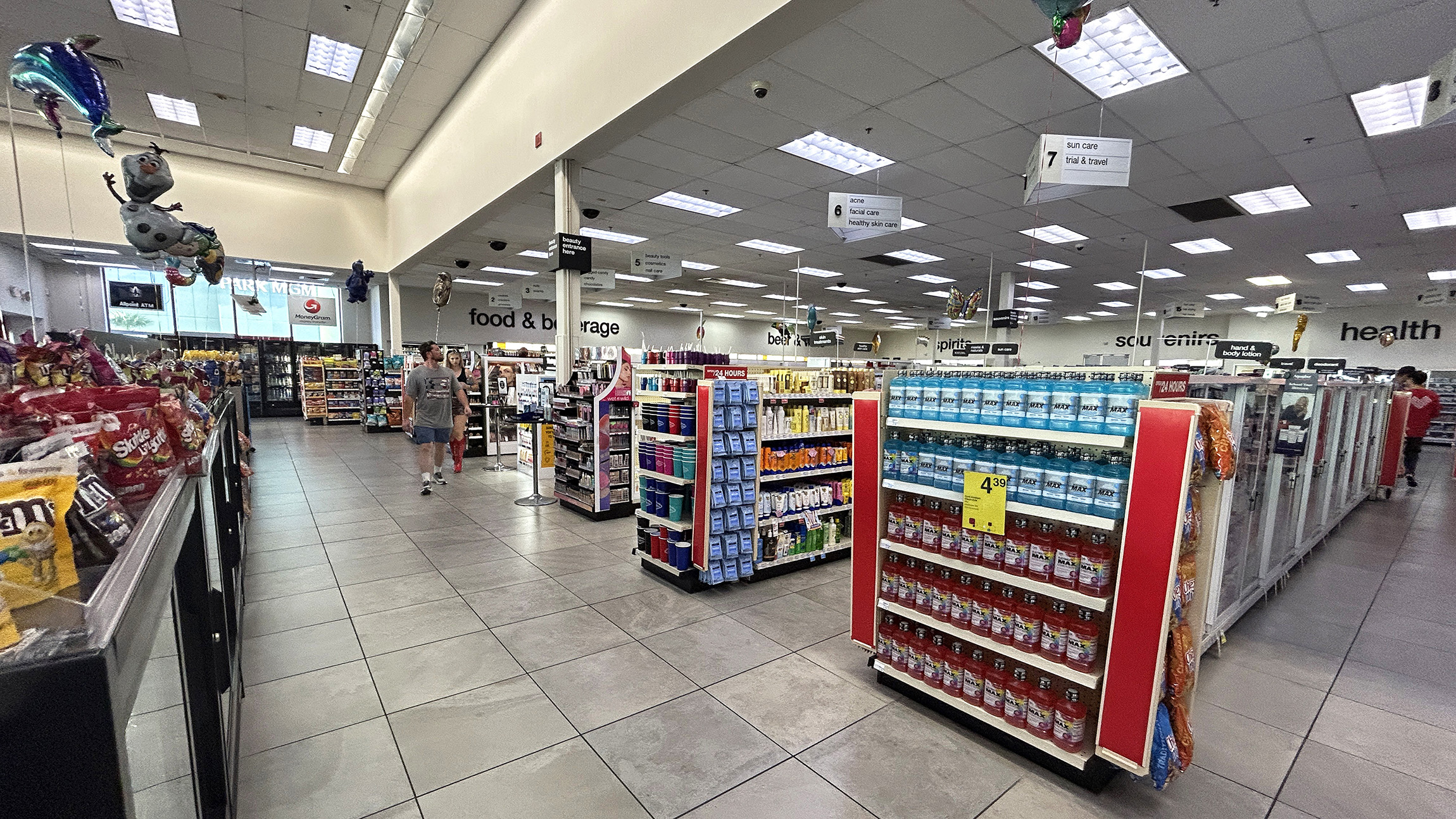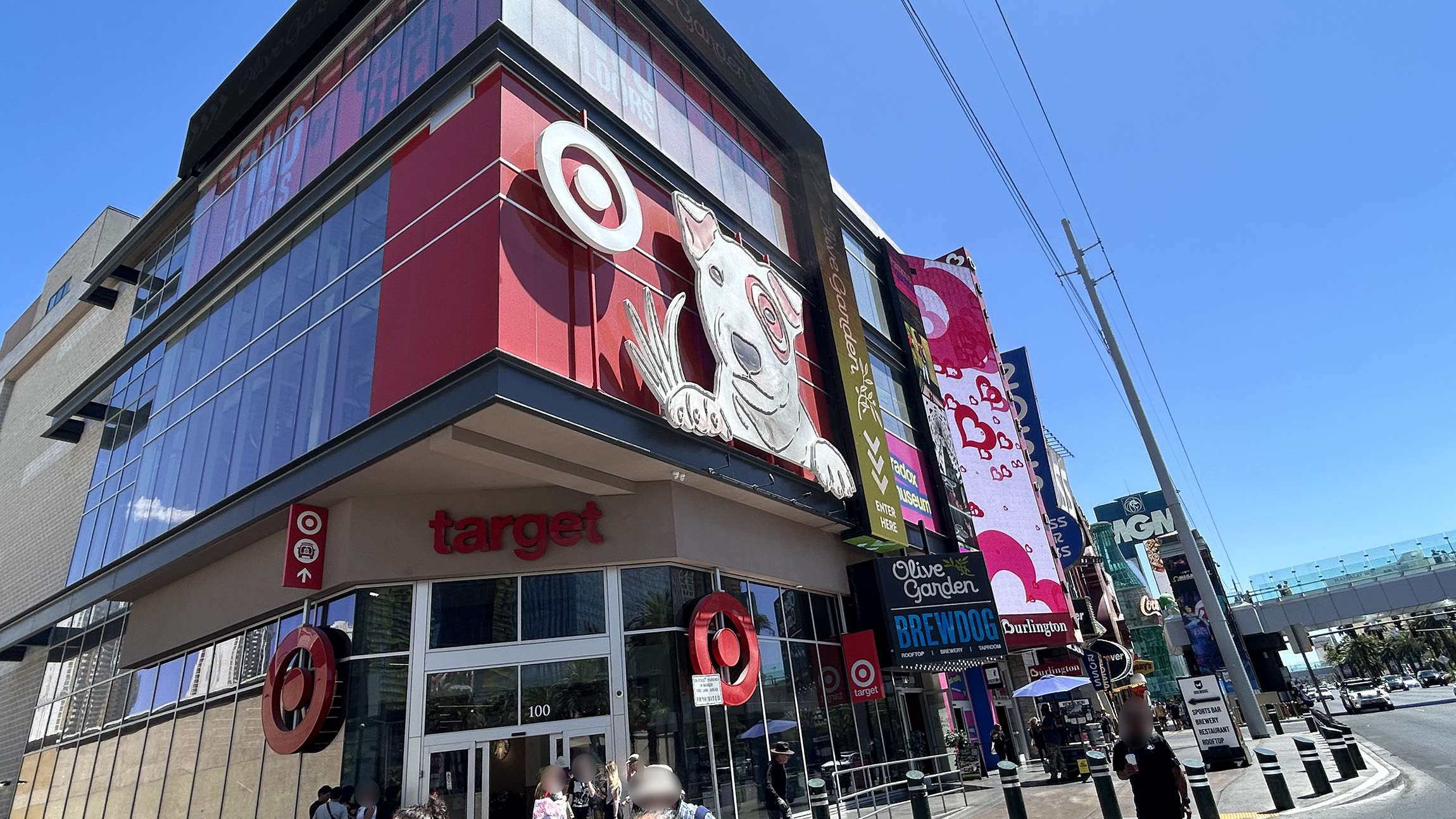 ストリップの店舗は町なかの一般的なTargetに比べるとややコンパクトですが、観光客が必要とするアイテムはしっかり揃っています。赤い丸のマークを目の周りにつけたブル・テリアのマスコット「ブルズアイ」に出迎えられて入る店内は、清潔感があり、アメリカらしいゆったりとした空間が広がっています。